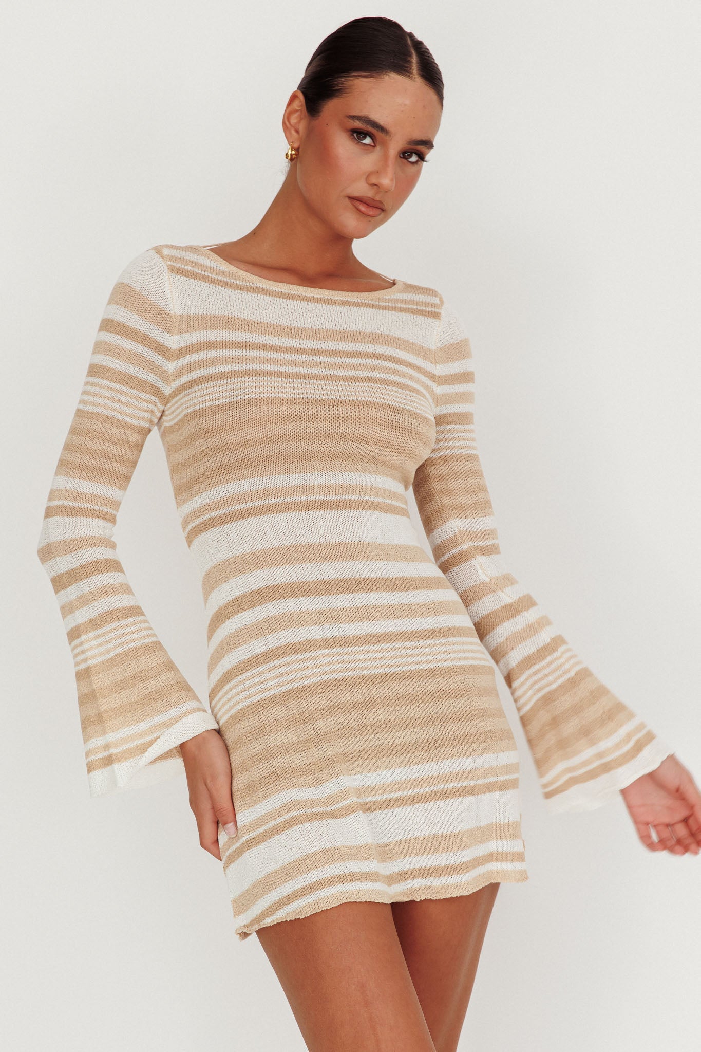Sylvan Long Sleeve Knit Mini Dress Tan Multi