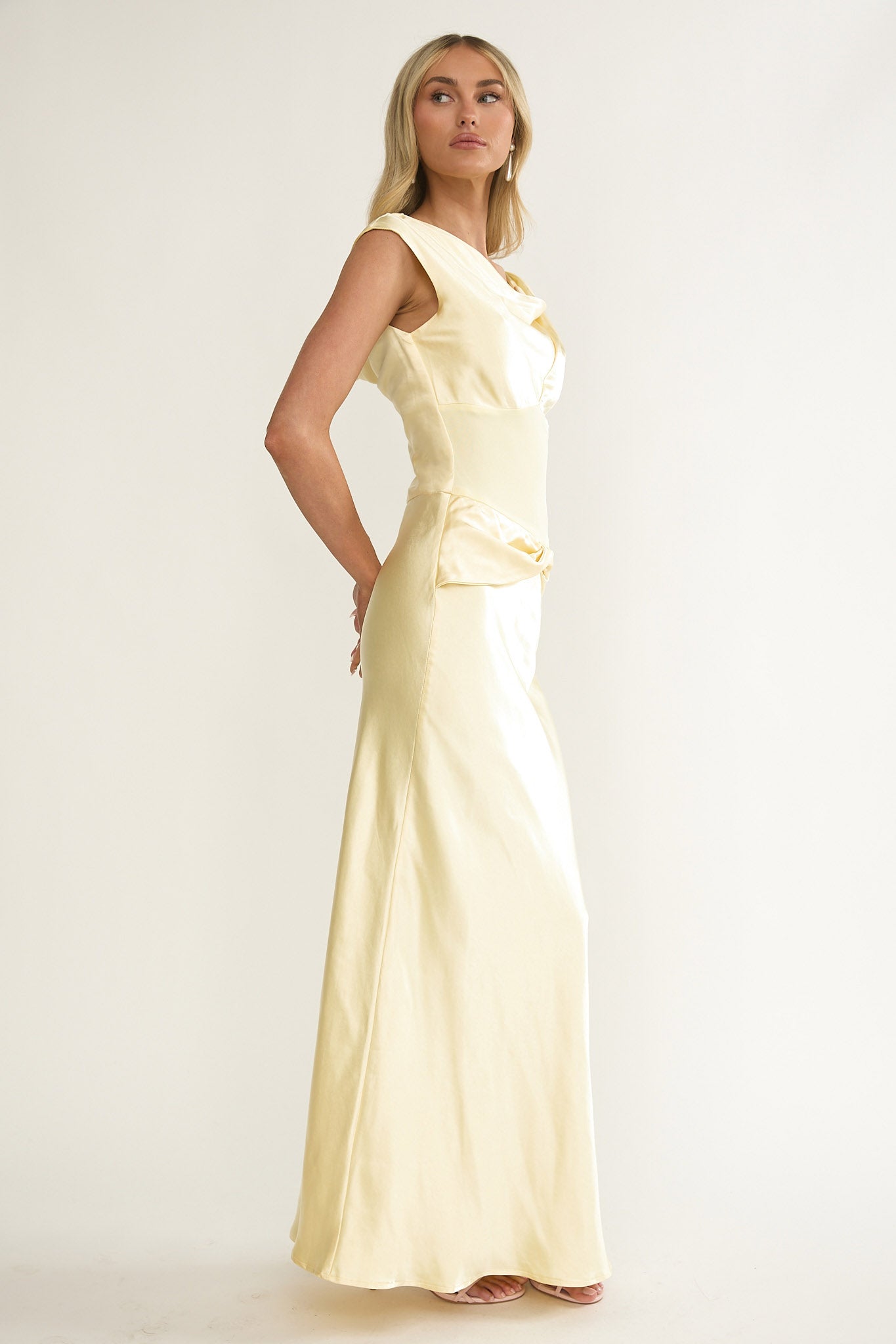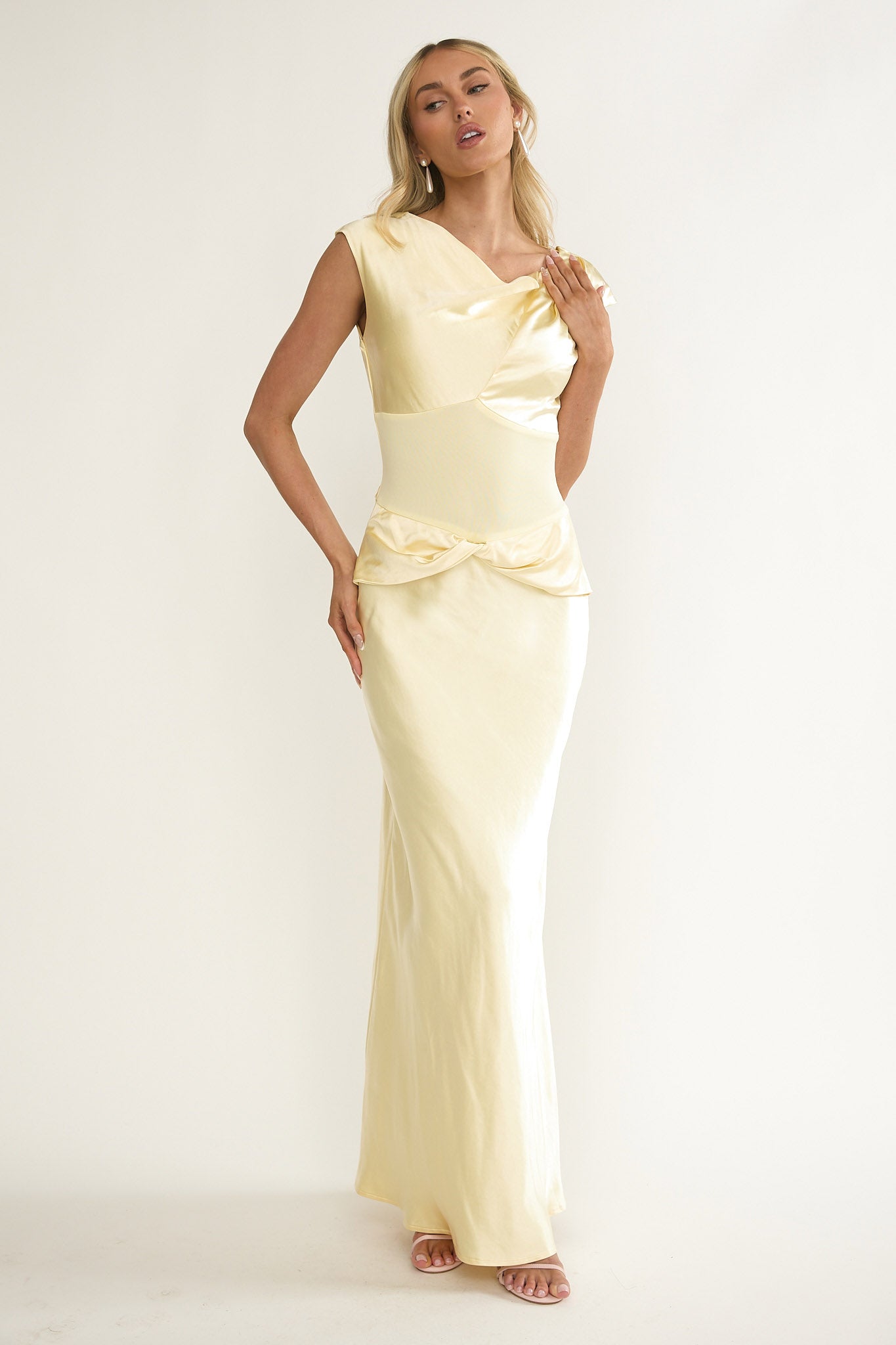 Tahlia Rae Mesh Waist Cap Sleeve Maxi Dress Butter