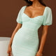Take Heart Puff Sleeve Ruched Mesh Mini Dress Green