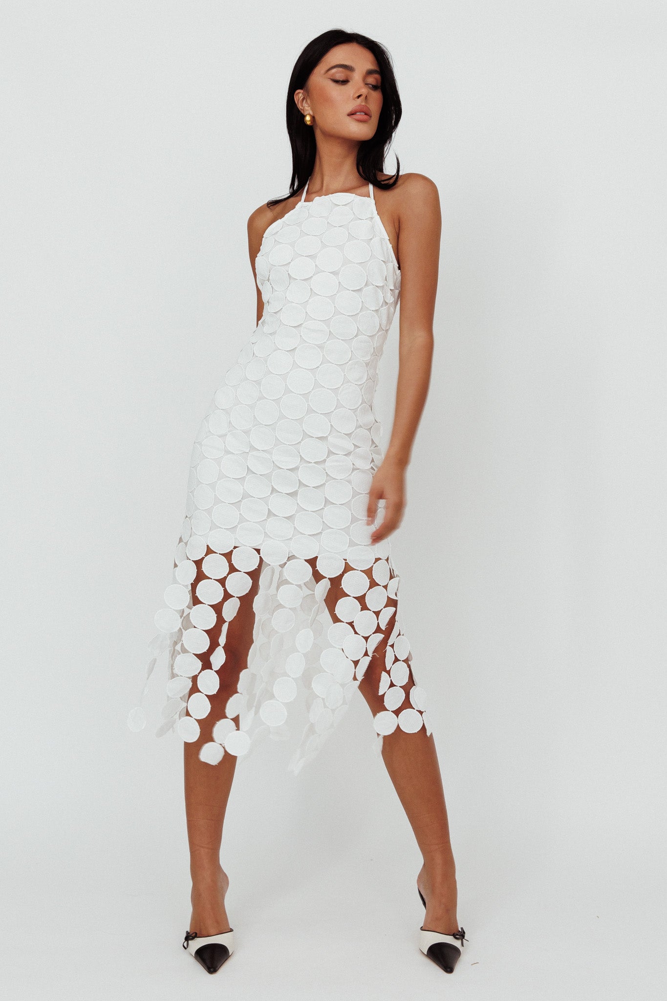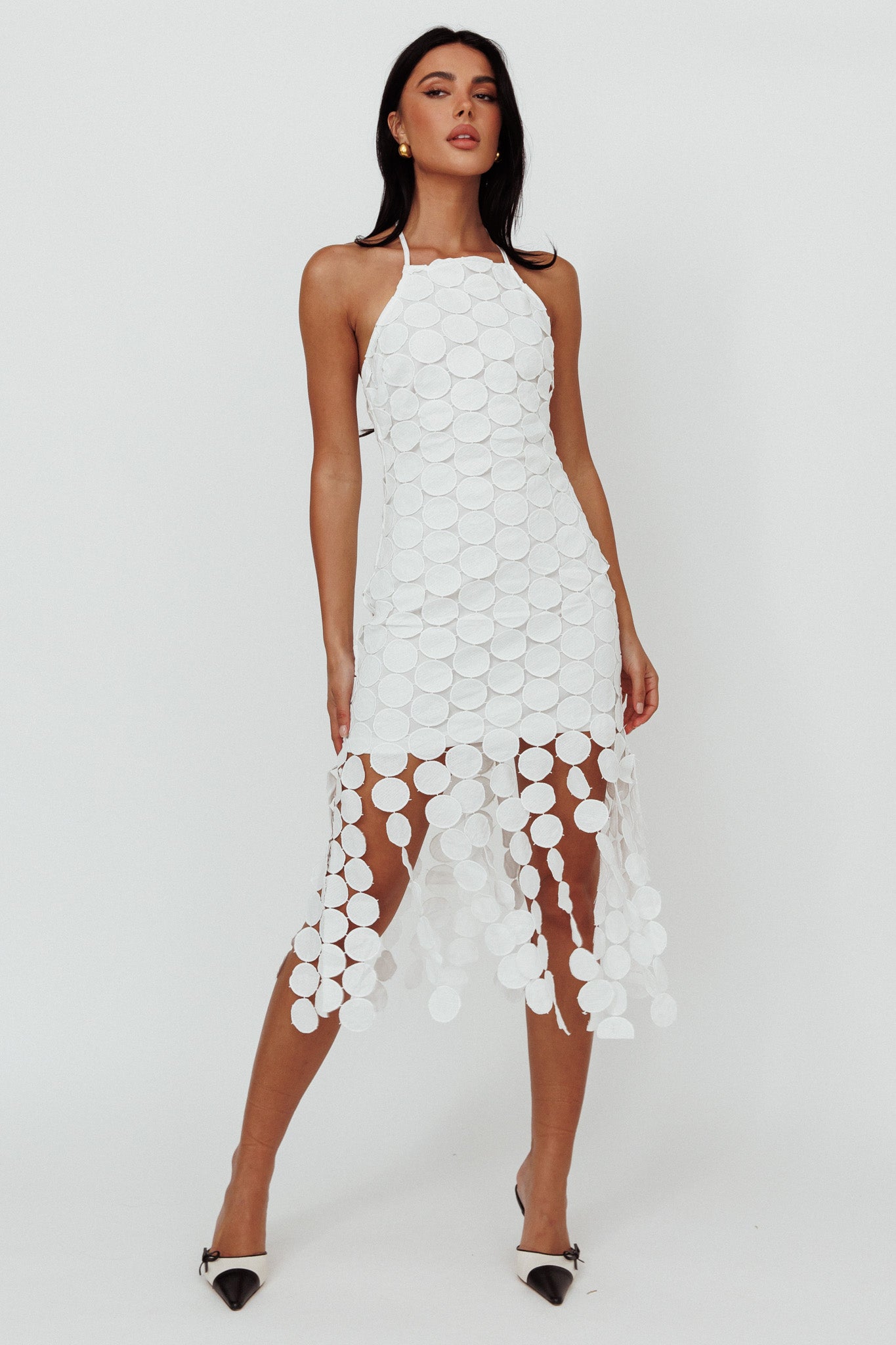 Taking Chances Halterneck Circle Mini Dress White