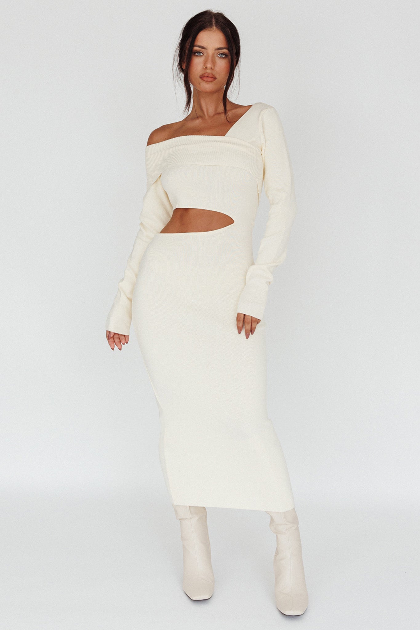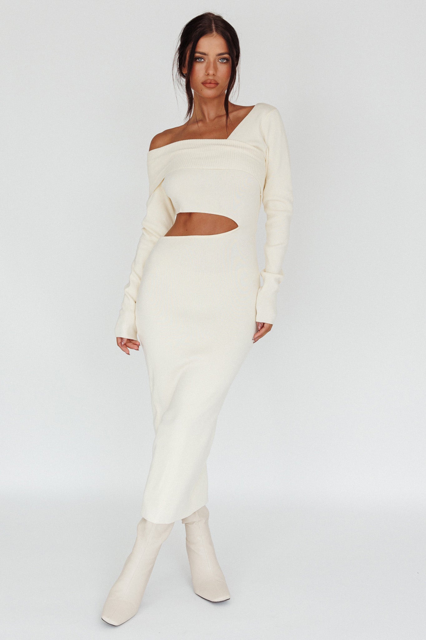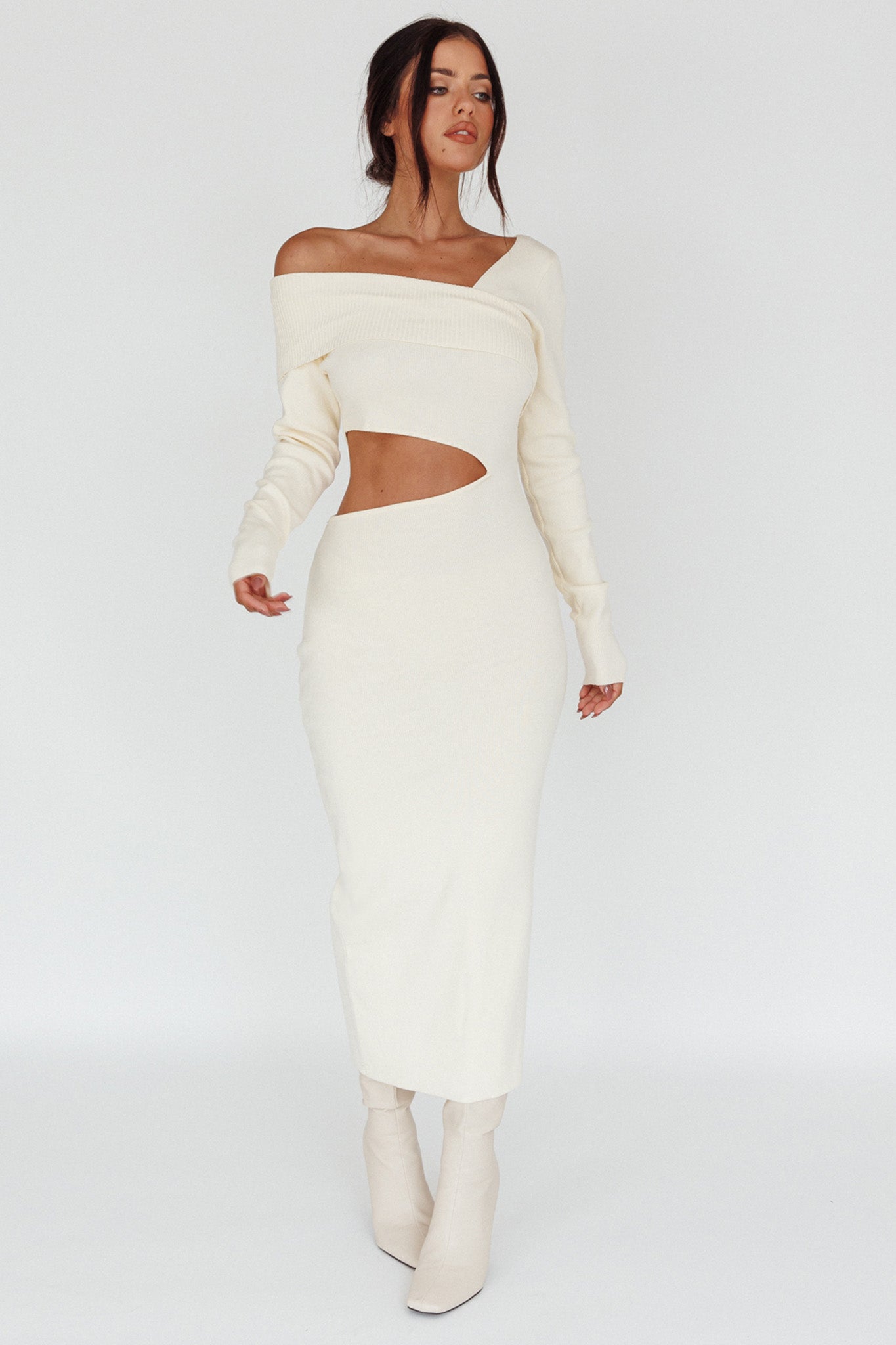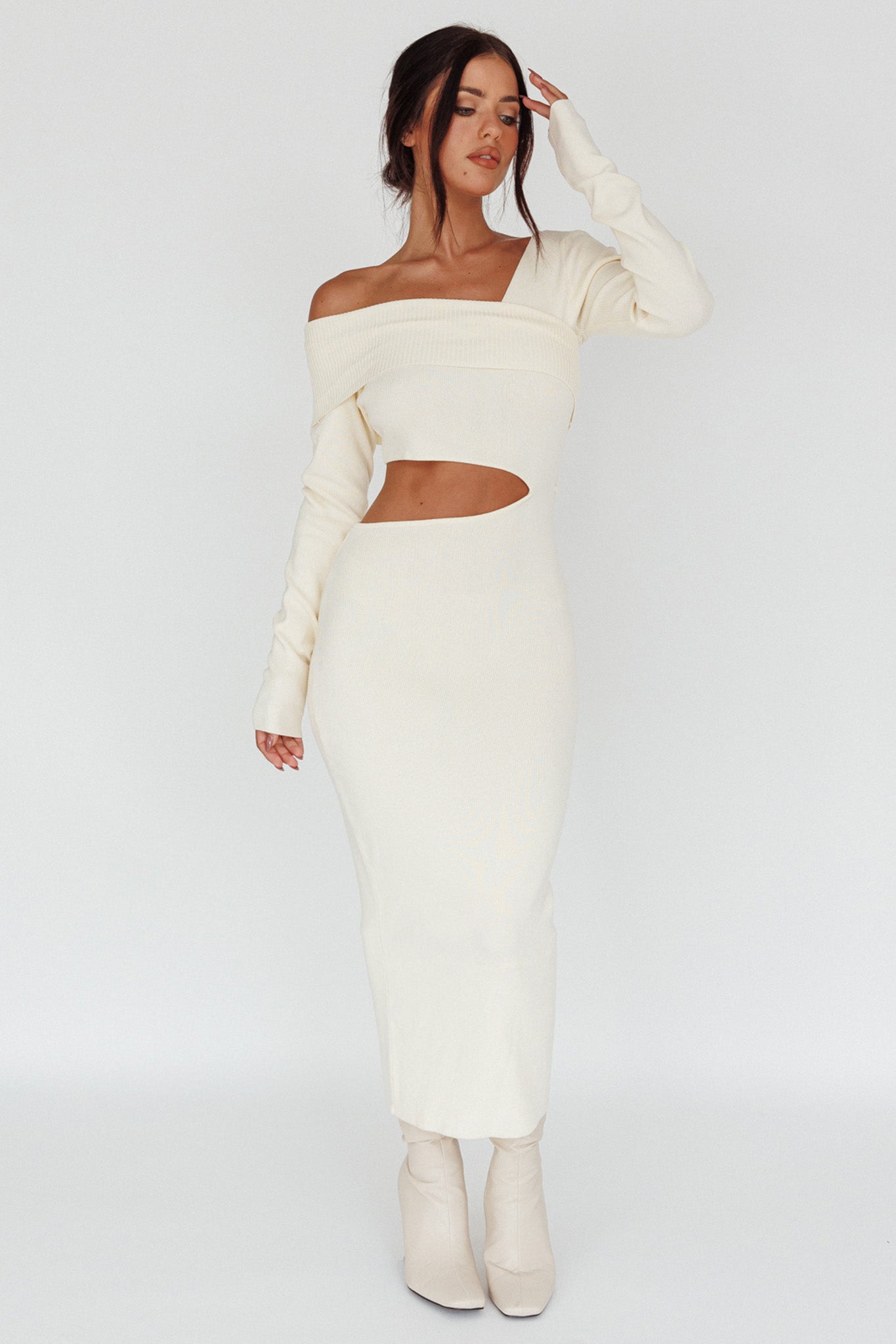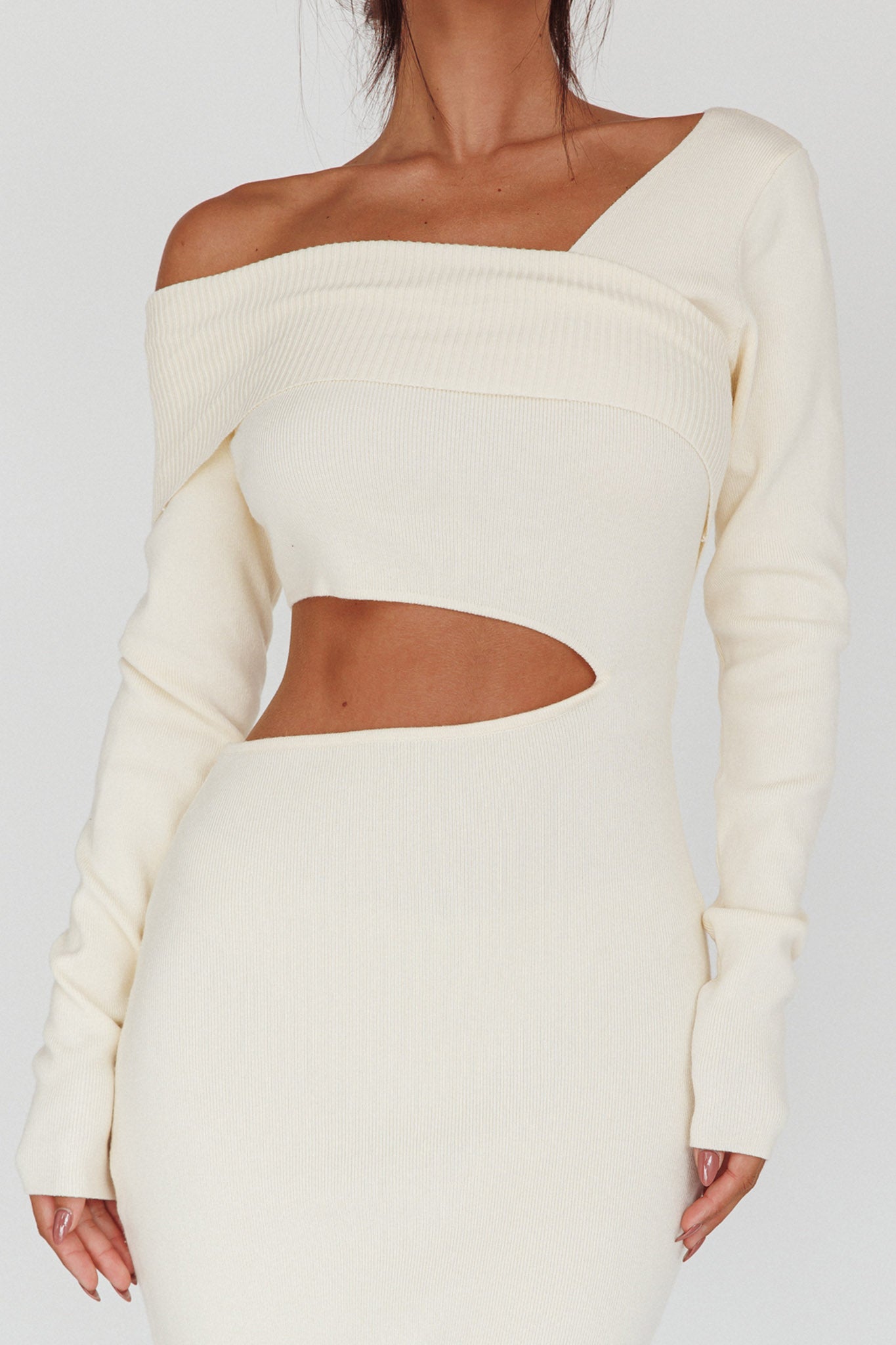 Tamar Long Sleeve One-Shoulder Midi Dress Cream