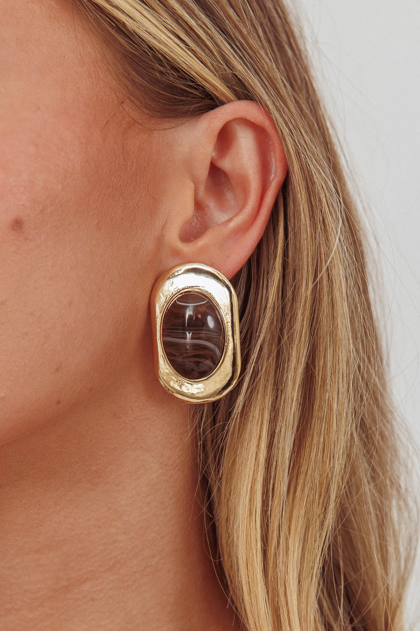 Tammy Squoval Cabochon Earrings Gold/Chocolate