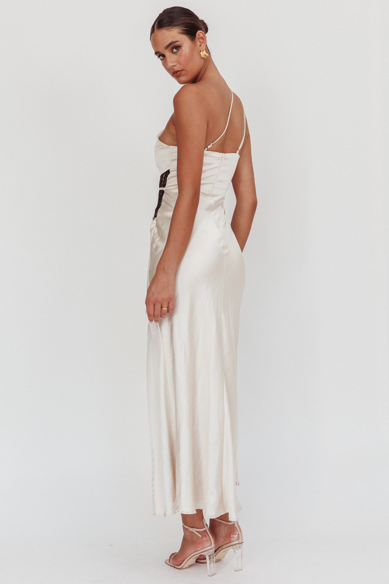 Tarly Lace Waist One-Shoulder Maxi Dress Champagne