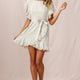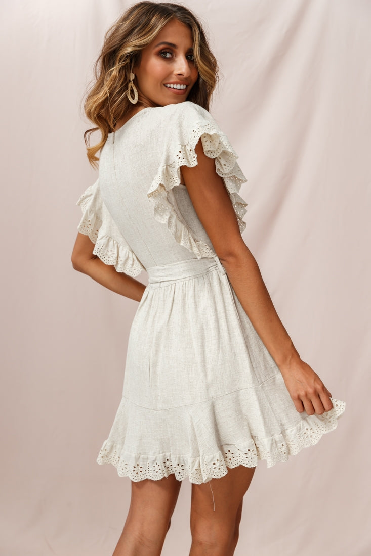 Taya Ruffle Shoulder Waist Tie Dress Beige