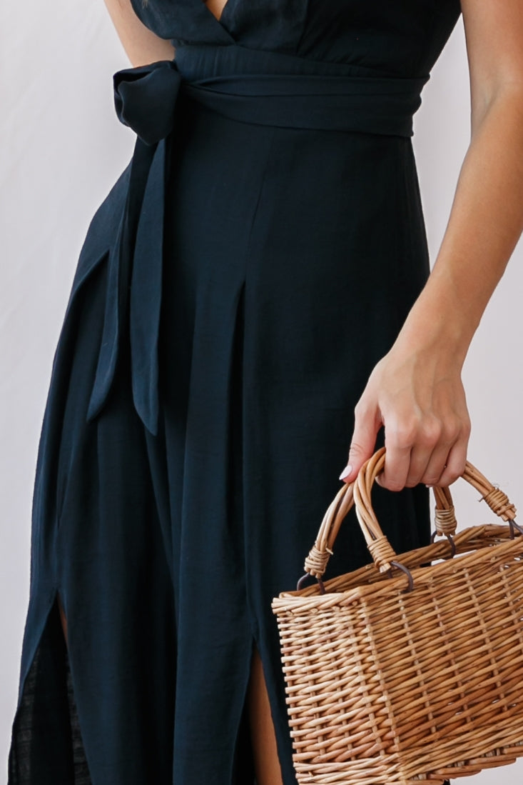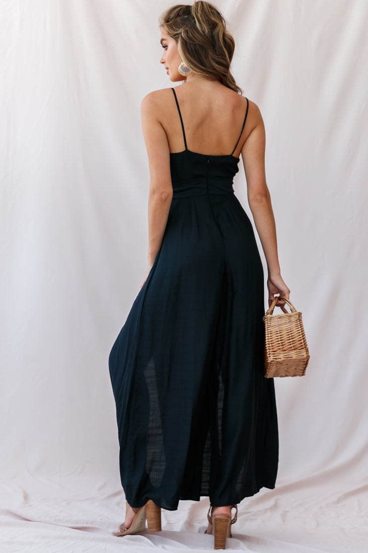 Taylor V-Neck Split Wide Leg Jumpsuit Black