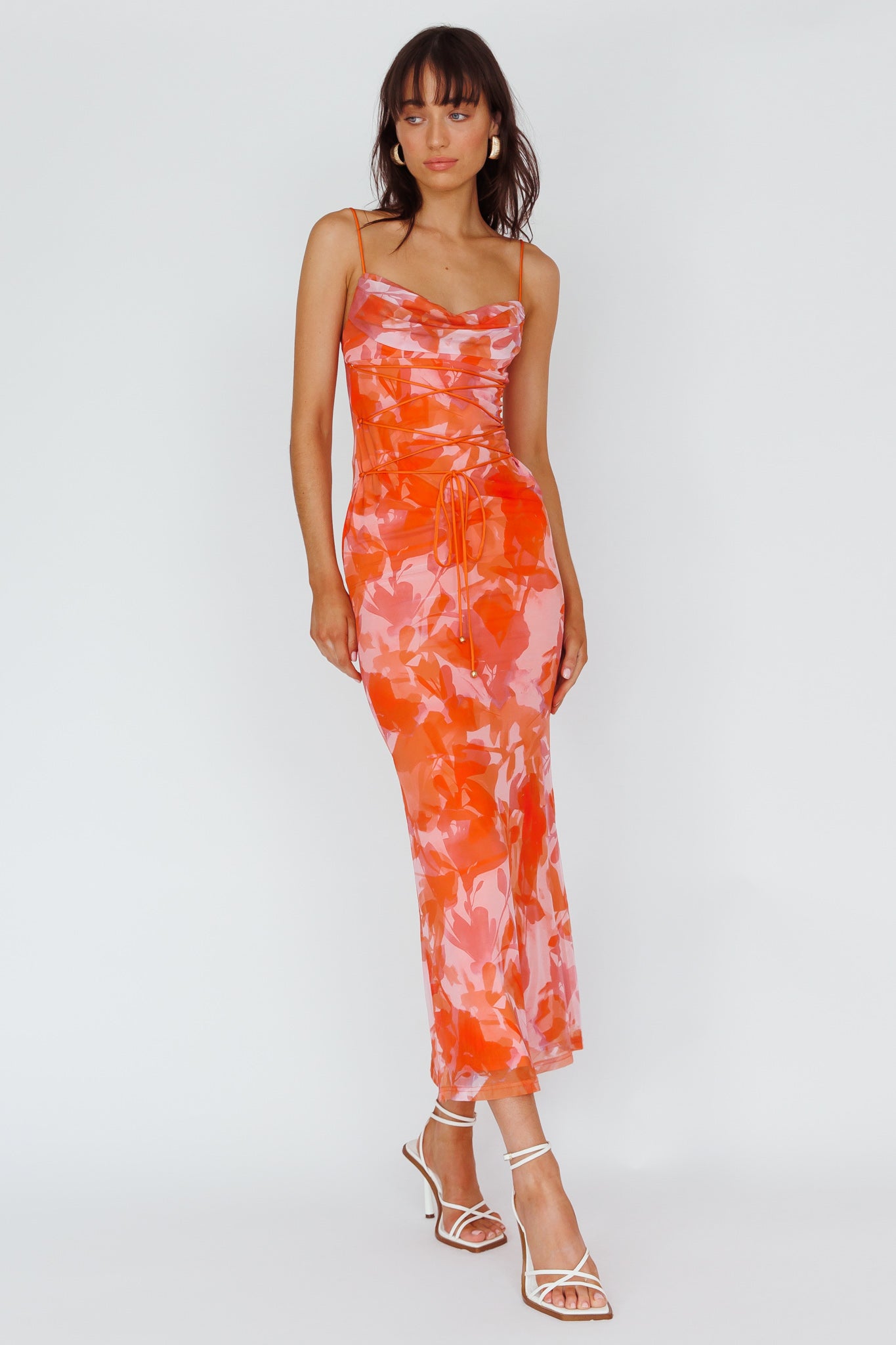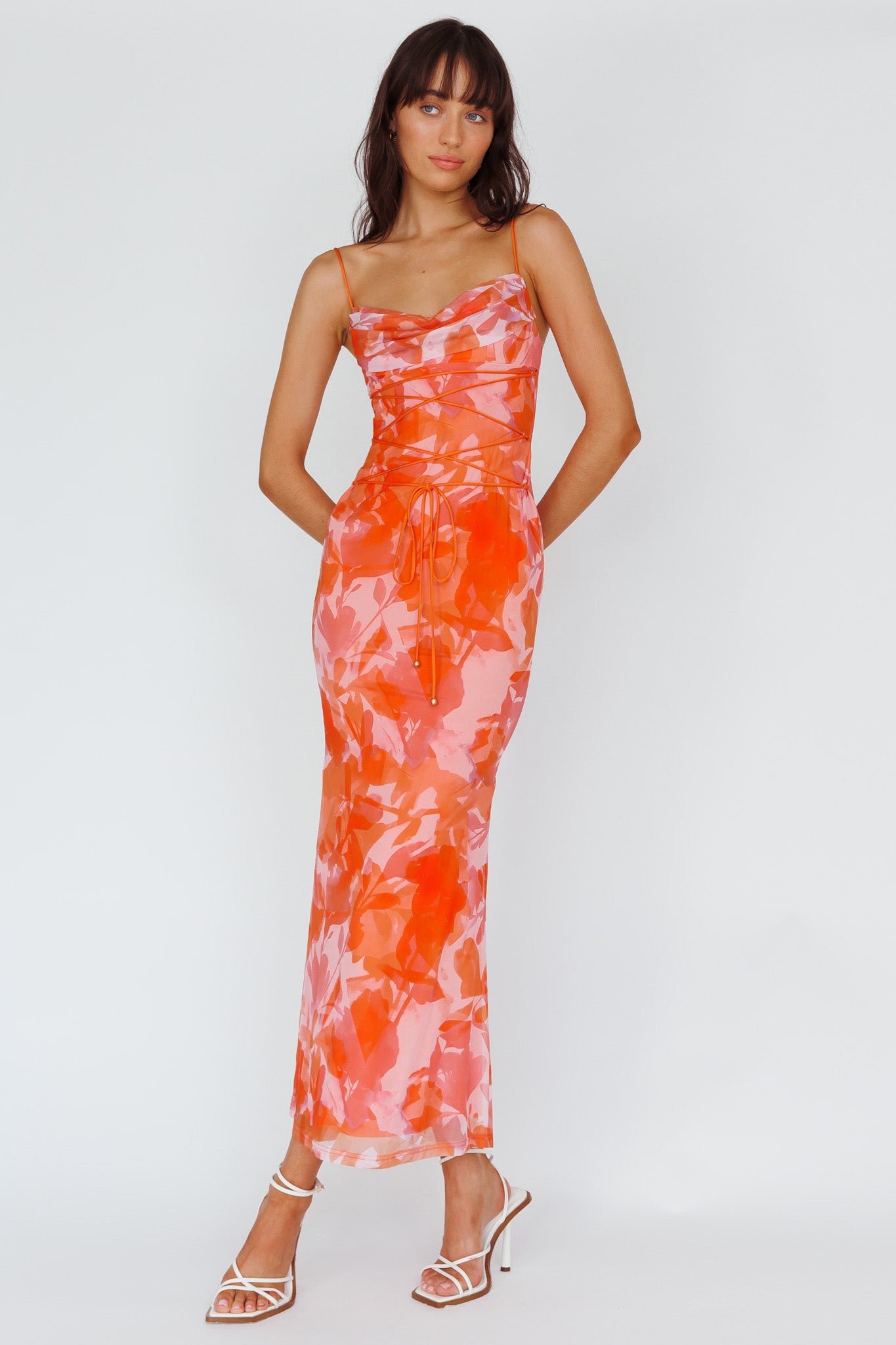 Teava Laced Waist Maxi Dress Print Floral Orange