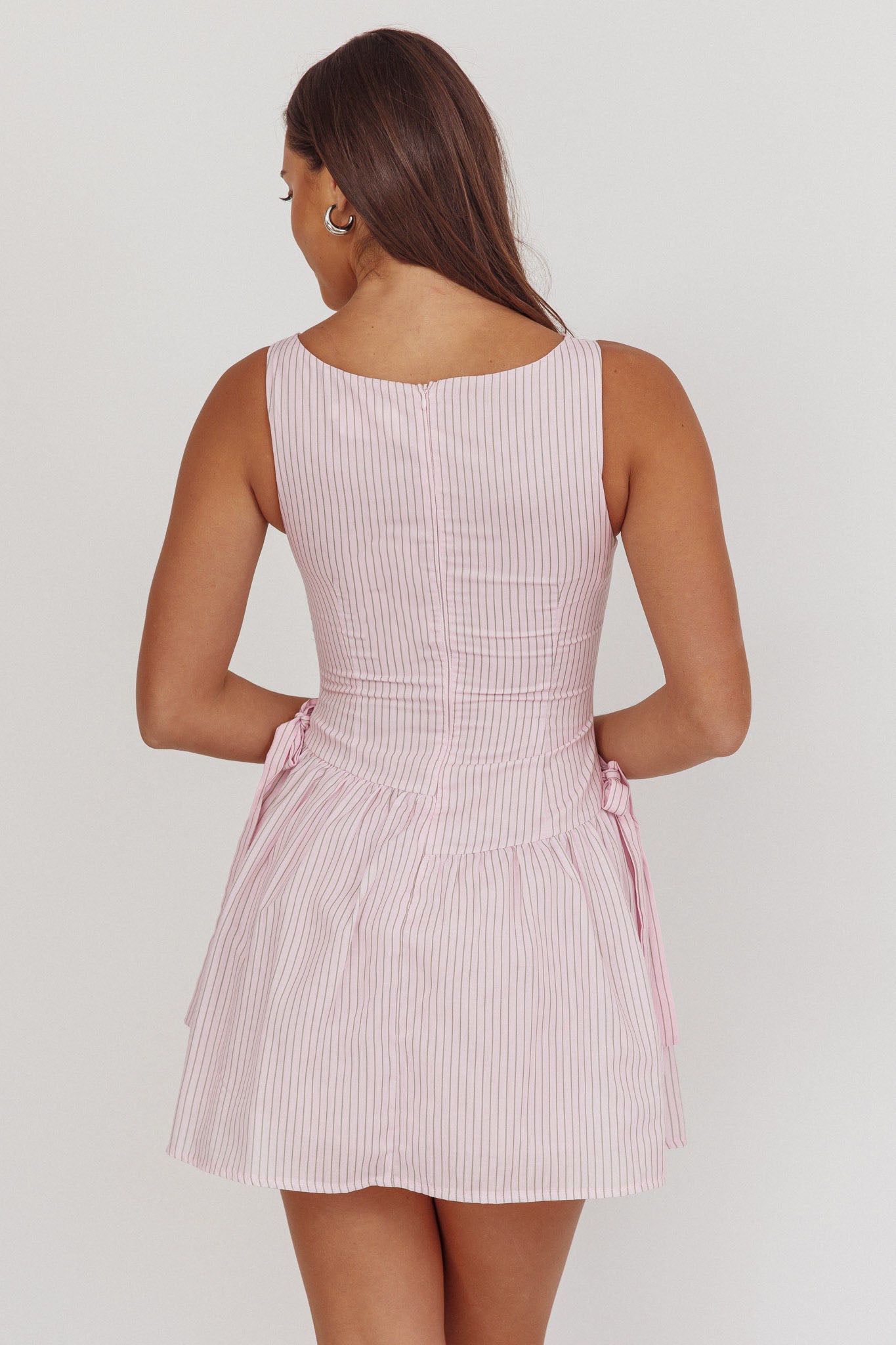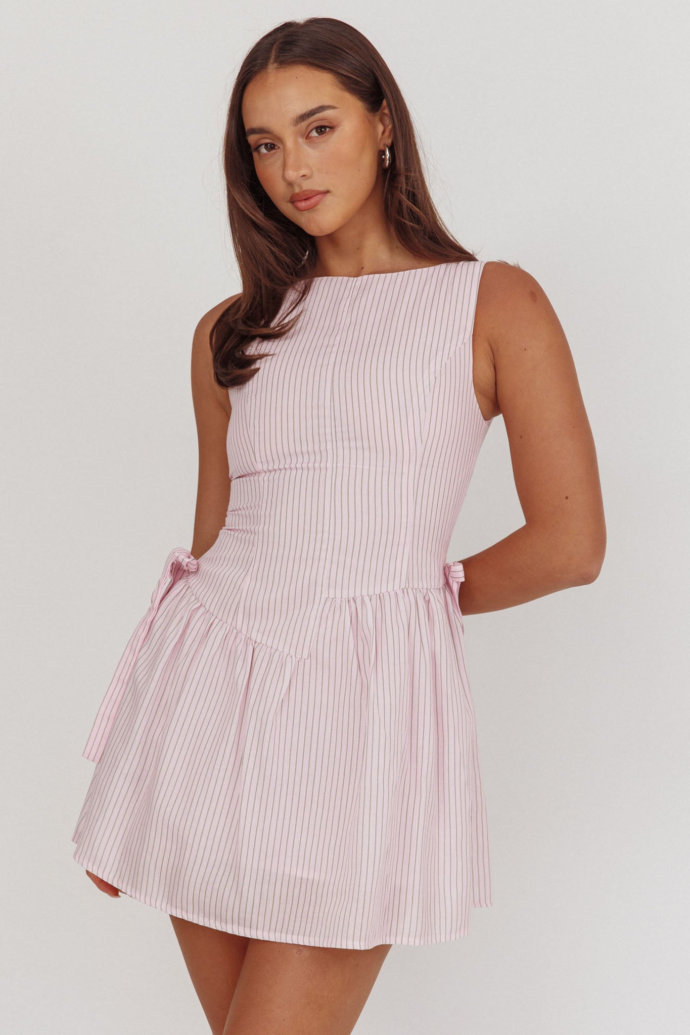 Hello, cutie! You will have them head over heels in our Teely mini dress. It features an asymmetric waistline and bows in the sides. It's perfect for a flirty first date teamed with western boots and a tote for a dreamy look.