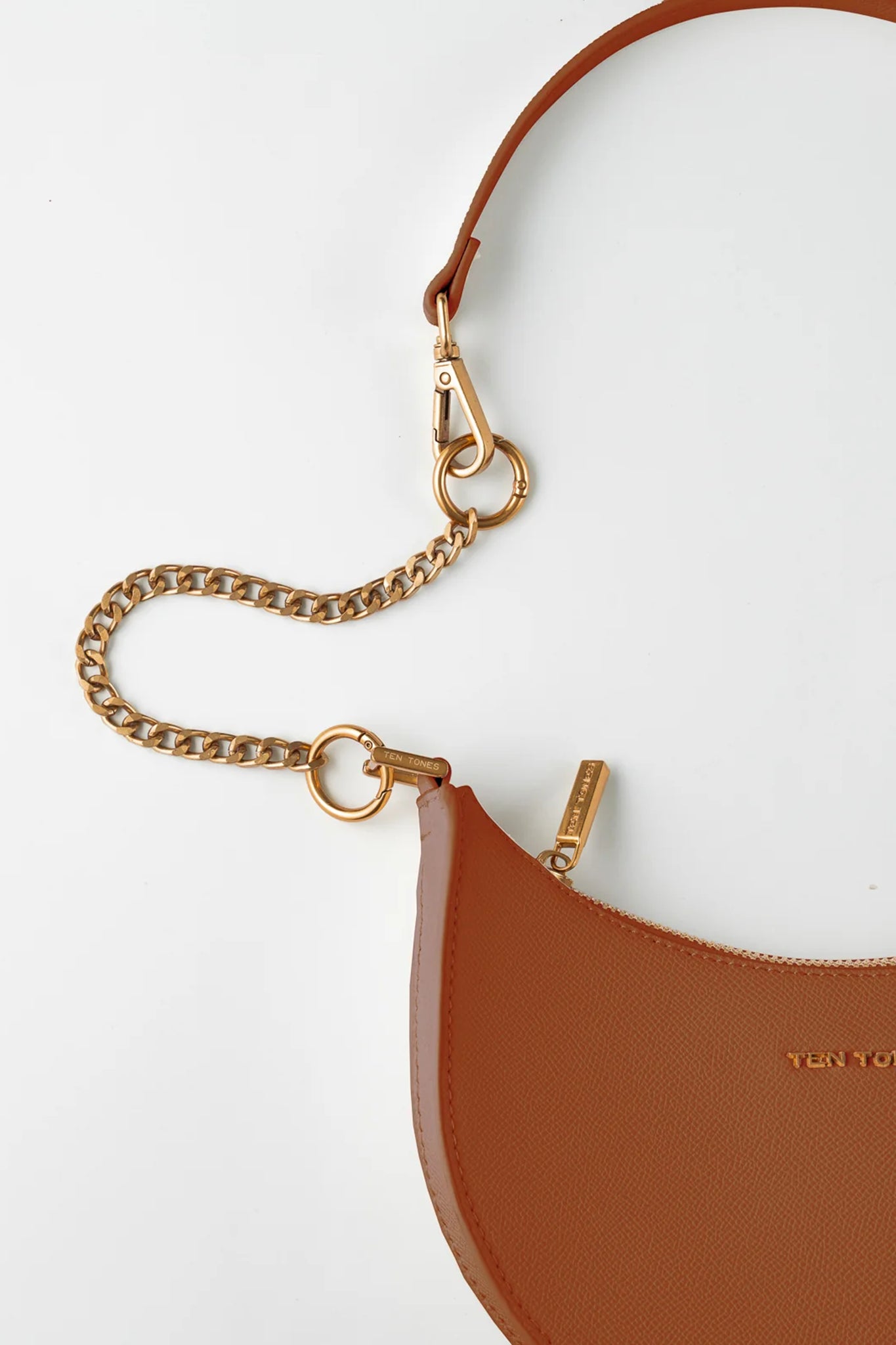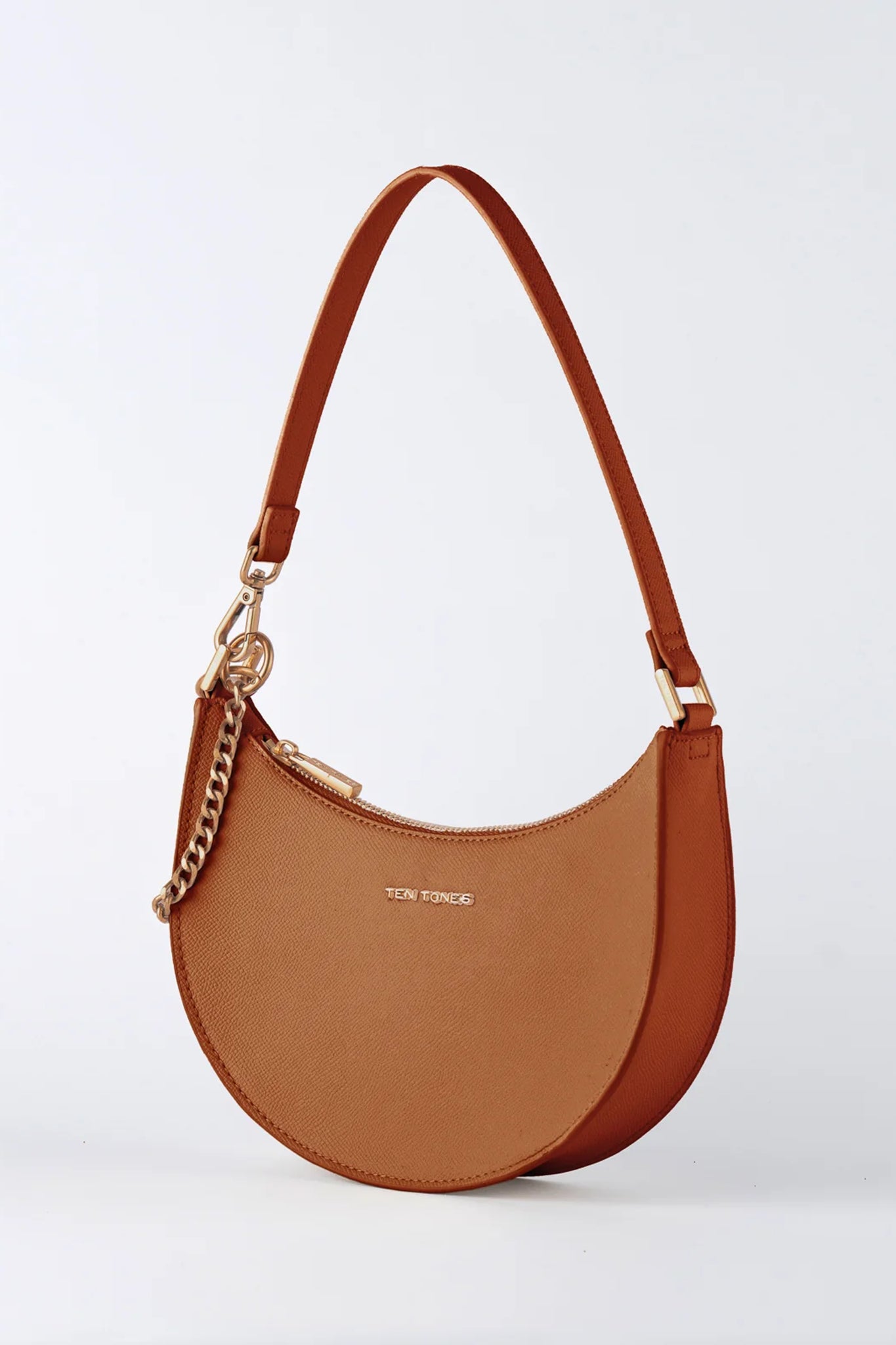 Complete your look with the Grayson moon bag by TEN TONES. Featuring a vegan leather and adjustable strap. It's perfect for weekend lunch dates or dressed up with a mini dress and boots for a night out with your girls.