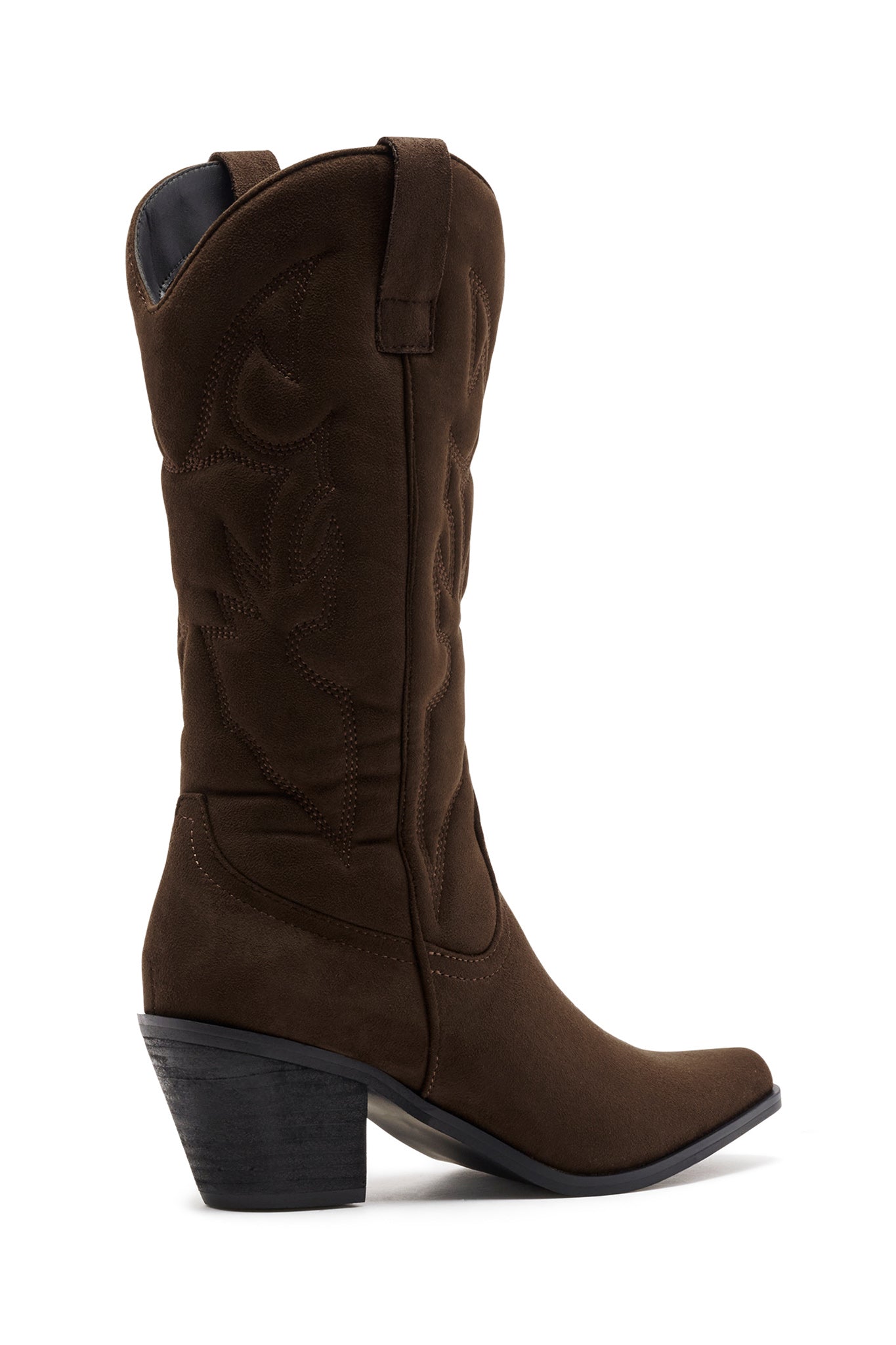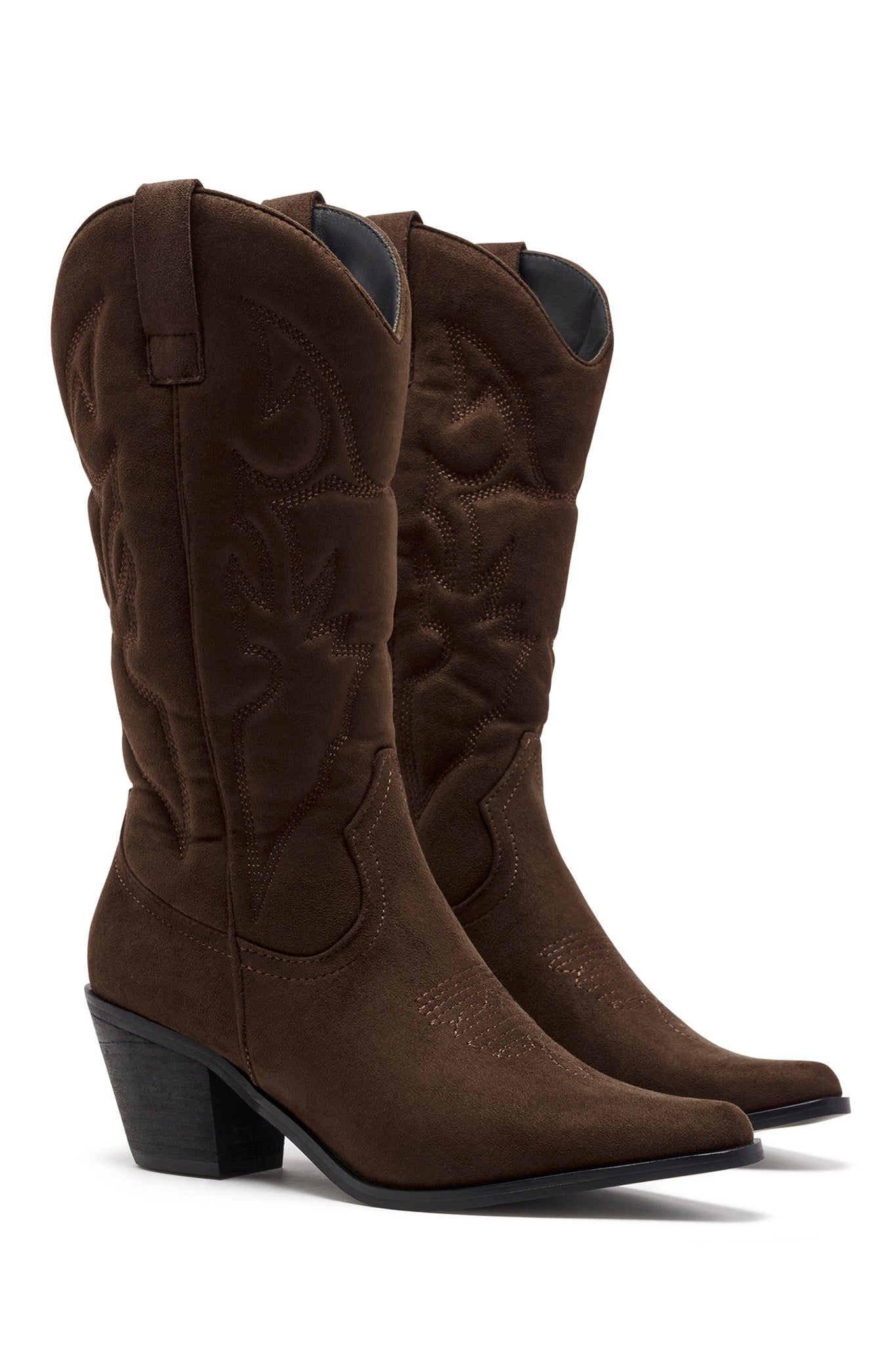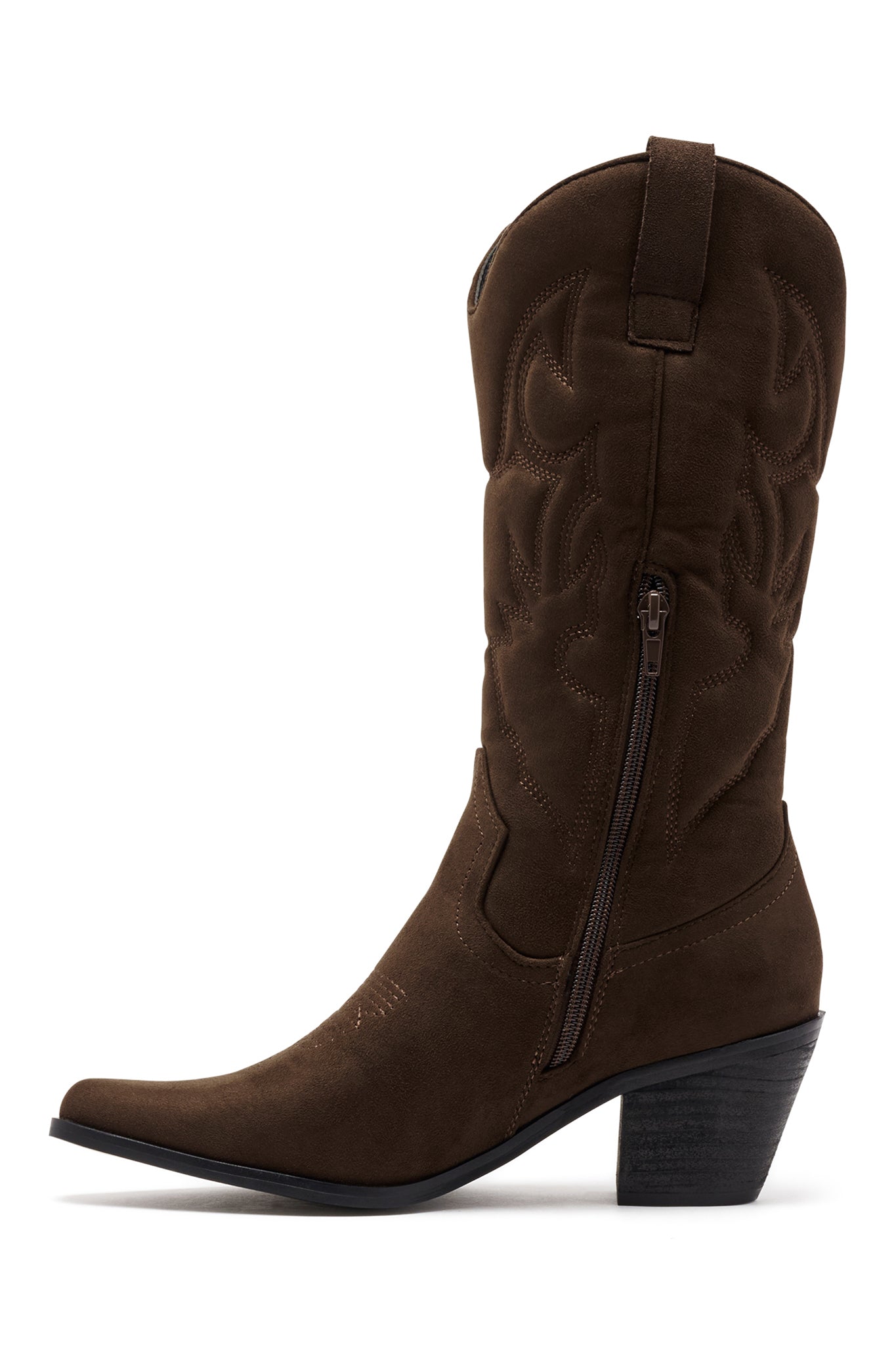 THERAPY Clayton Cowboy Boot Chocolate Faux Suede