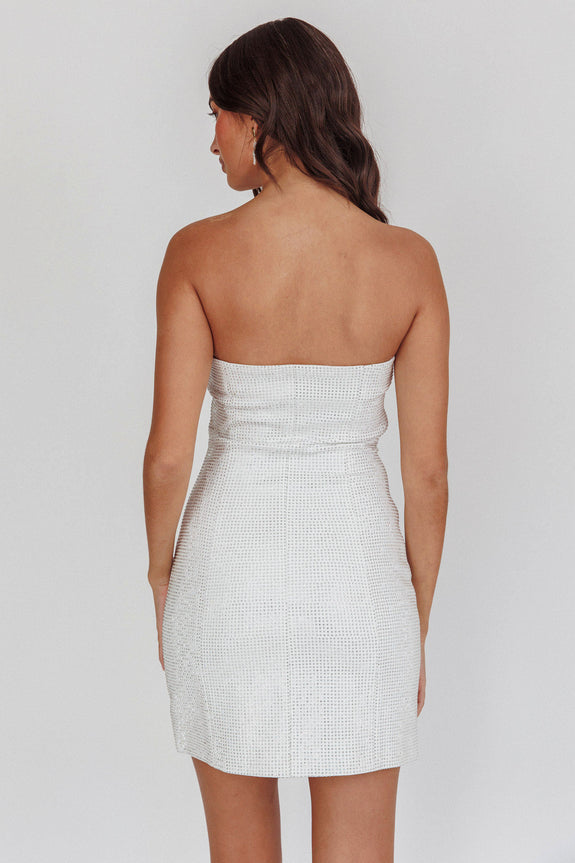 This Feeling Strapless Diamante Mini Dress White