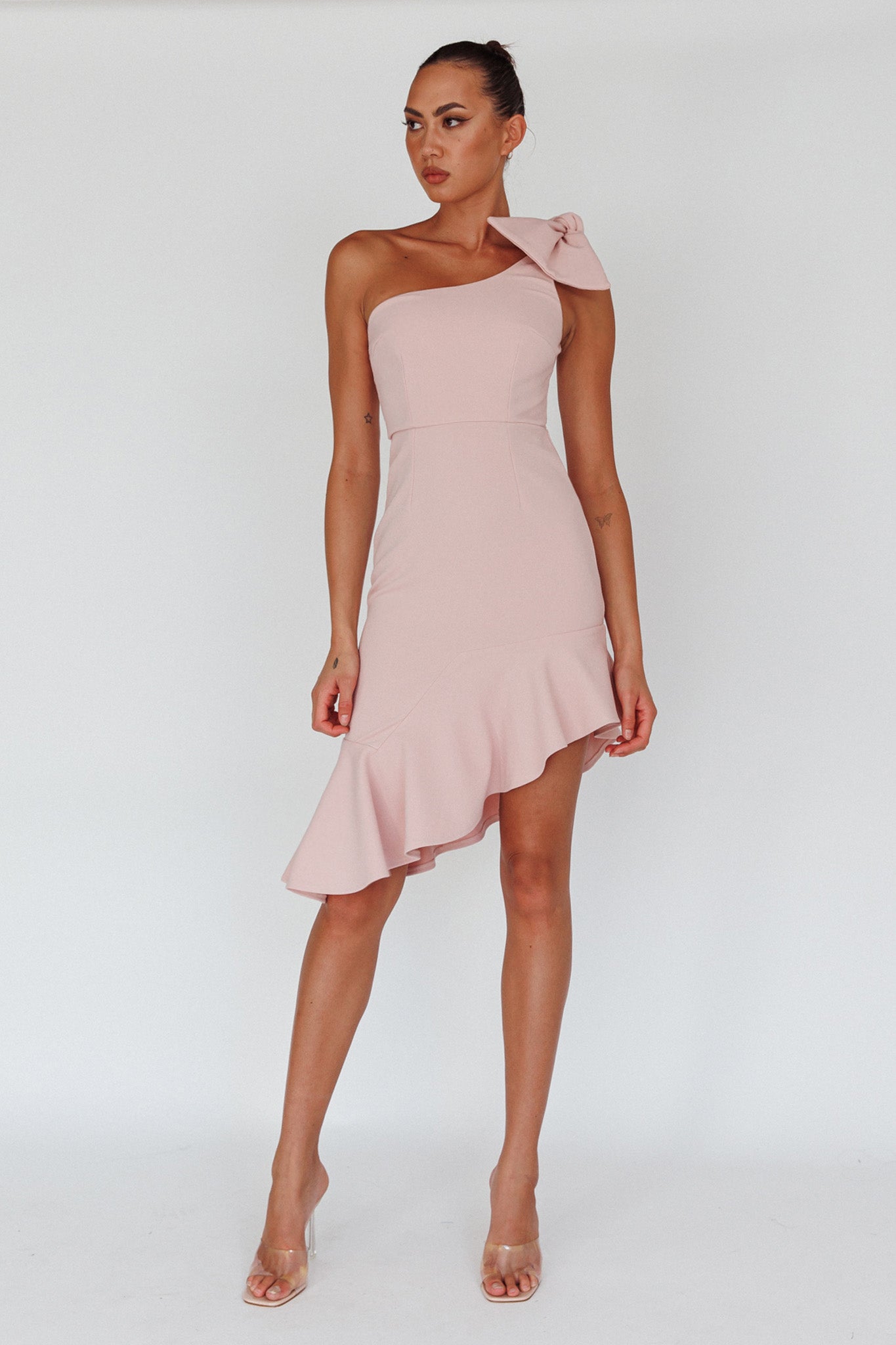 You'll get ALL the attention in our Tiffany dress! Featuring a one-shoulder style with super cute bow detail, ruffle-trimmed asymmetric hem and an invisible zipper in the back. Perfect for rooftop cocktails with a hot date or a night of dancing with your bffs. Style it with clear heels and gold jewelry for a look we are loving!