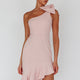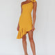 You'll get ALL the attention in our Tiffany dress! Featuring a one-shoulder style with super cute bow detail, ruffle-trimmed asymmetric hem and an invisible zipper in the back. Perfect for rooftop cocktails with a hot date or a night of dancing with your bffs. Style it with clear heels and gold jewelry for a look we are loving!