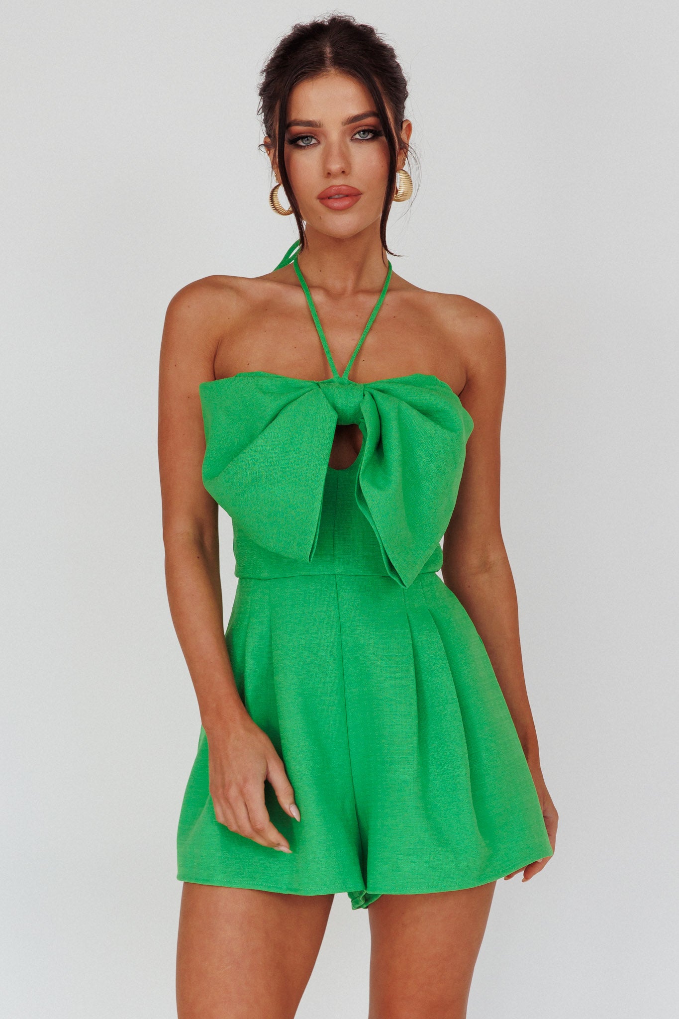 Hello, cutie! You will get all the attention in our super cute Tink romper. Featuring an oversized bow in the bust and halterneck style. It's perfect for rooftop happy hour with your girls teamed with strappy heels and a baguette bag for an ultra chic look.