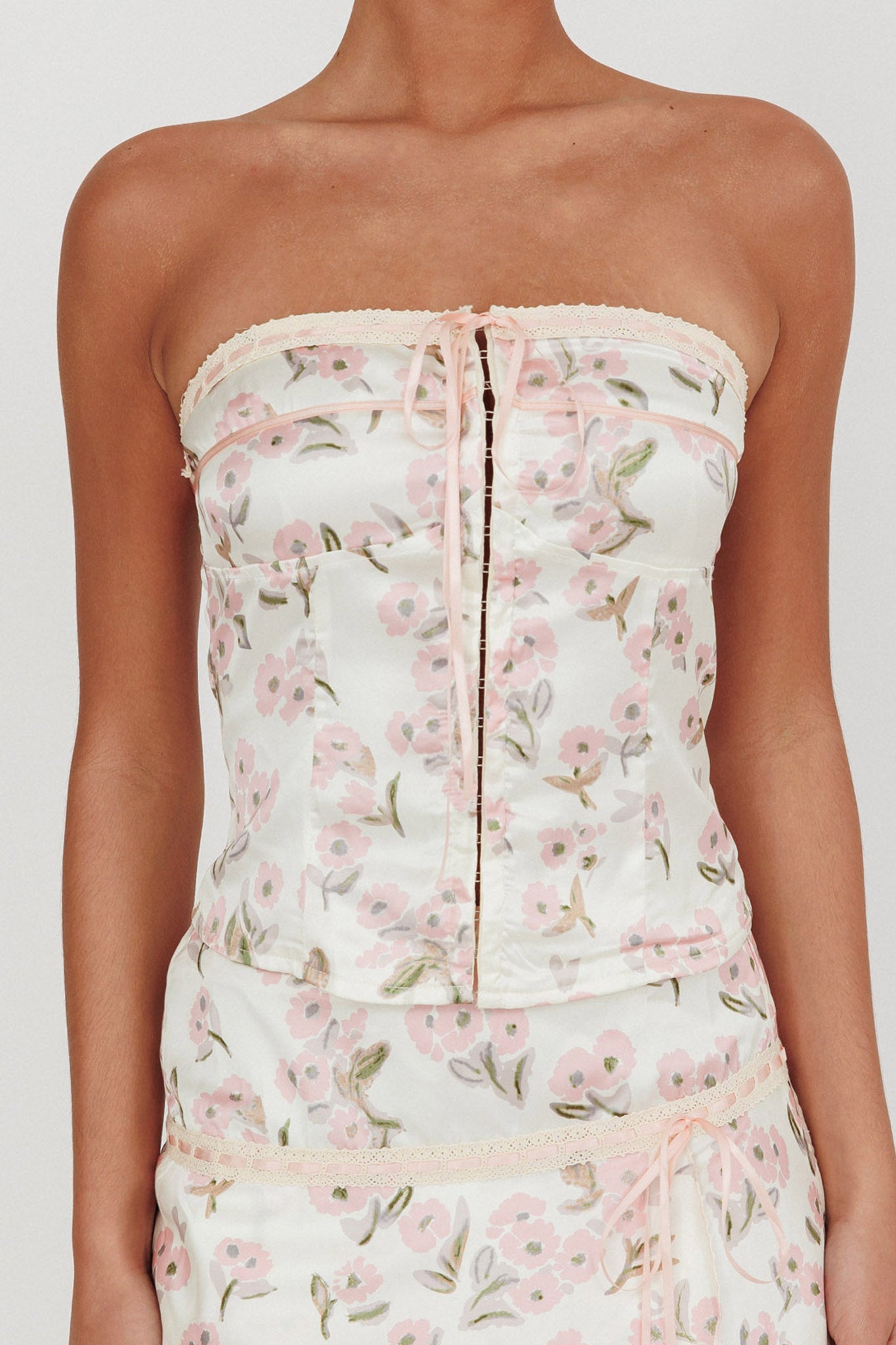 Hello, gorgeous! You will leave them speechless in our pretty Tiya top. Featuring the prettiest lace and ribbon trim, it's perfect for a romantic dinner date or special occasion. Team it with its matching skirt and kitten heels for an unforgettable look.