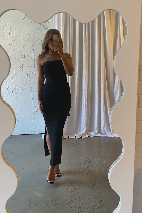 Told You So Strapless Waist Tie Knit Maxi Dress Black