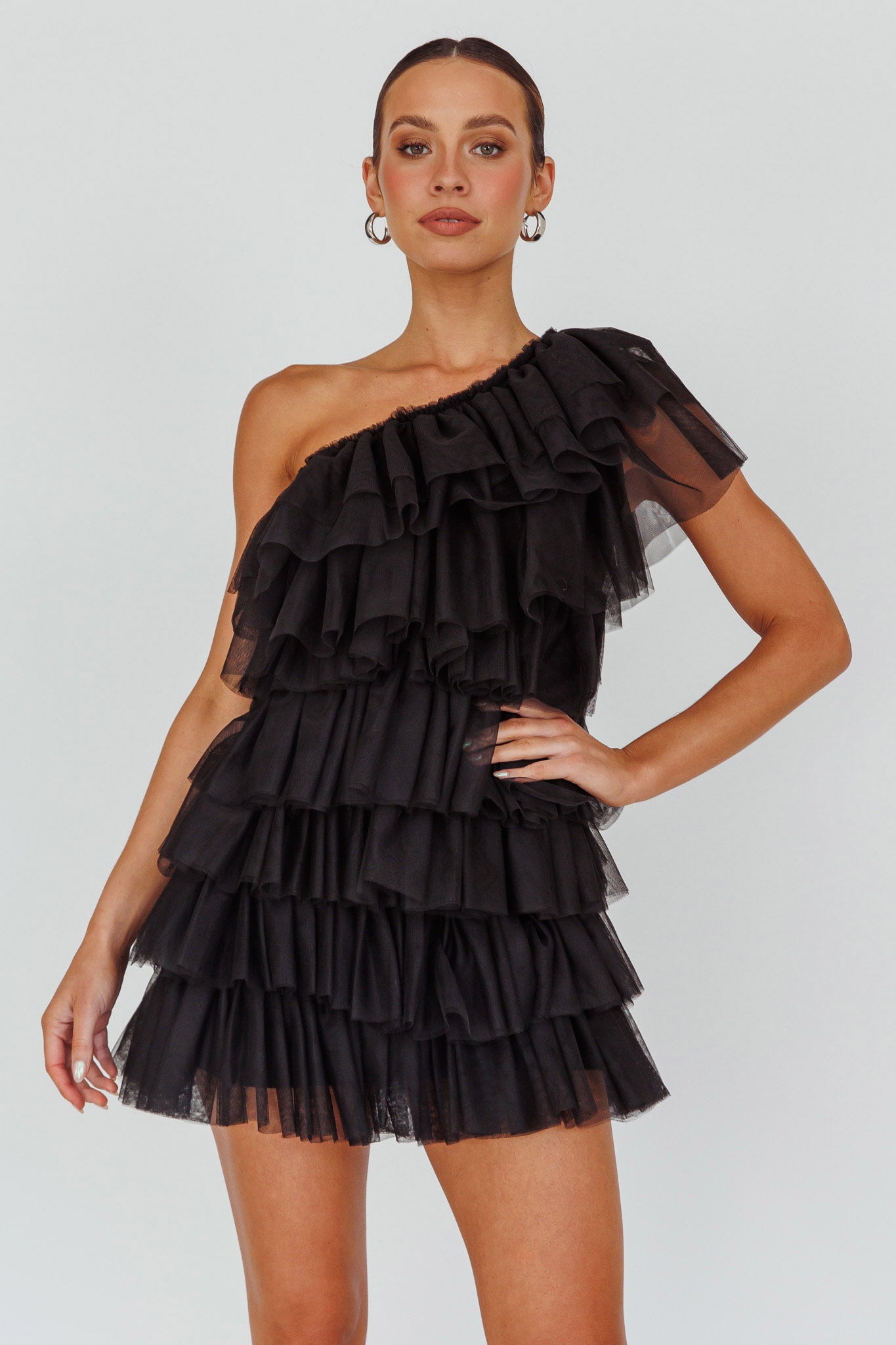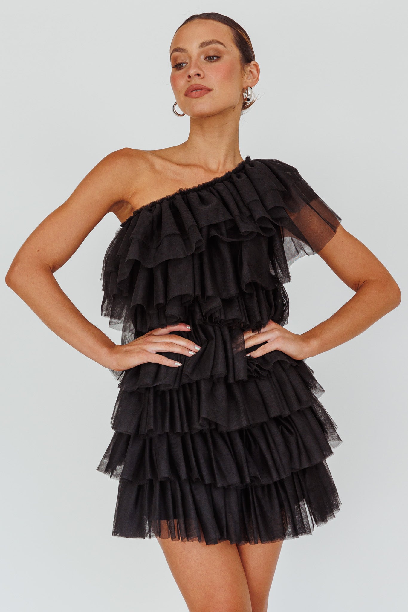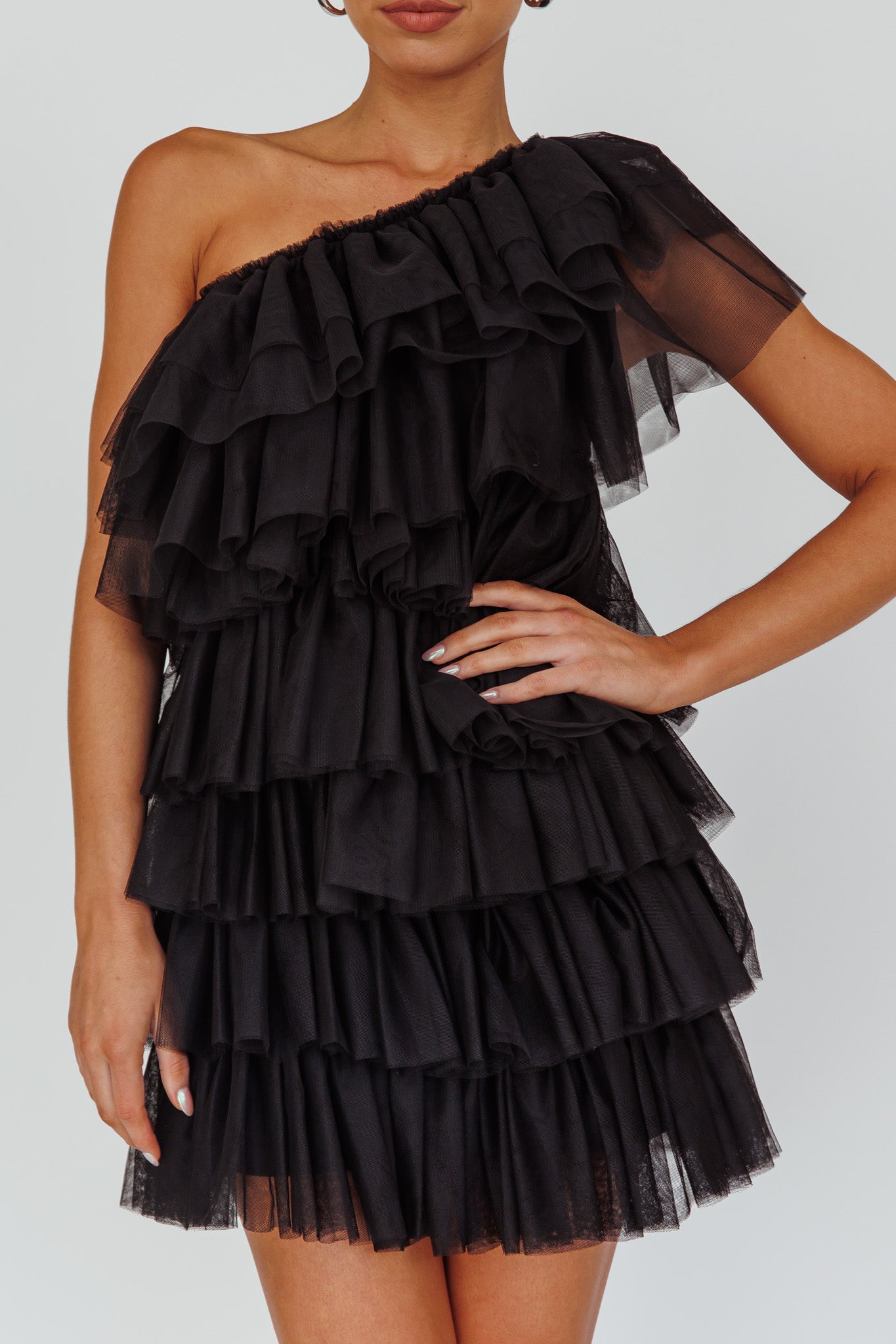 Tomi Layered Frill One-Shoulder Mini Dress Black