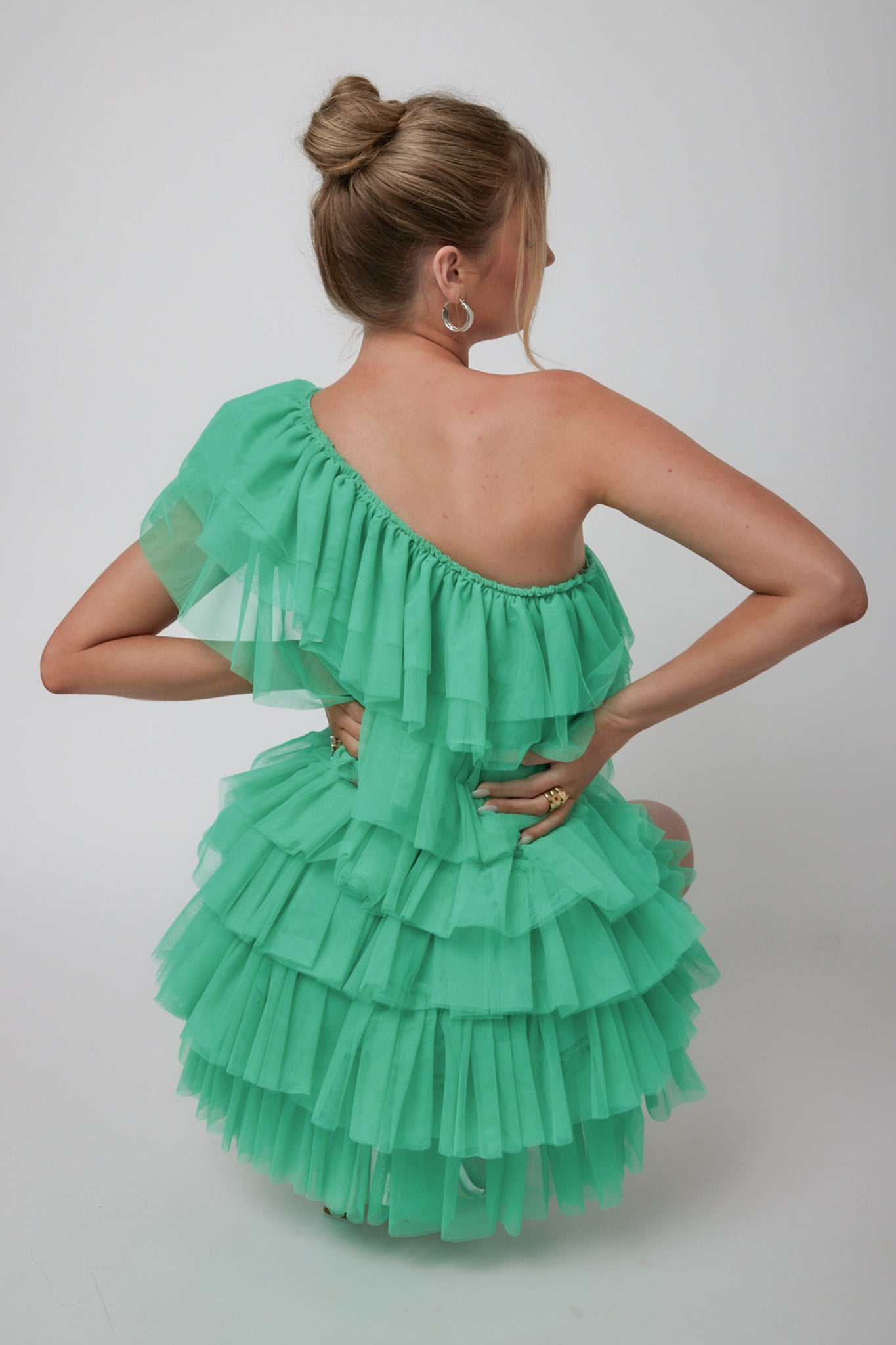 Tomi Layered Frill One-Shoulder Mini Dress Spearmint
