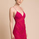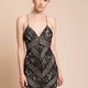Sex appeal oozes from this lace overlay bodycon. Deep V neckline and geometric patterning makes this the perfect cocktail dress.