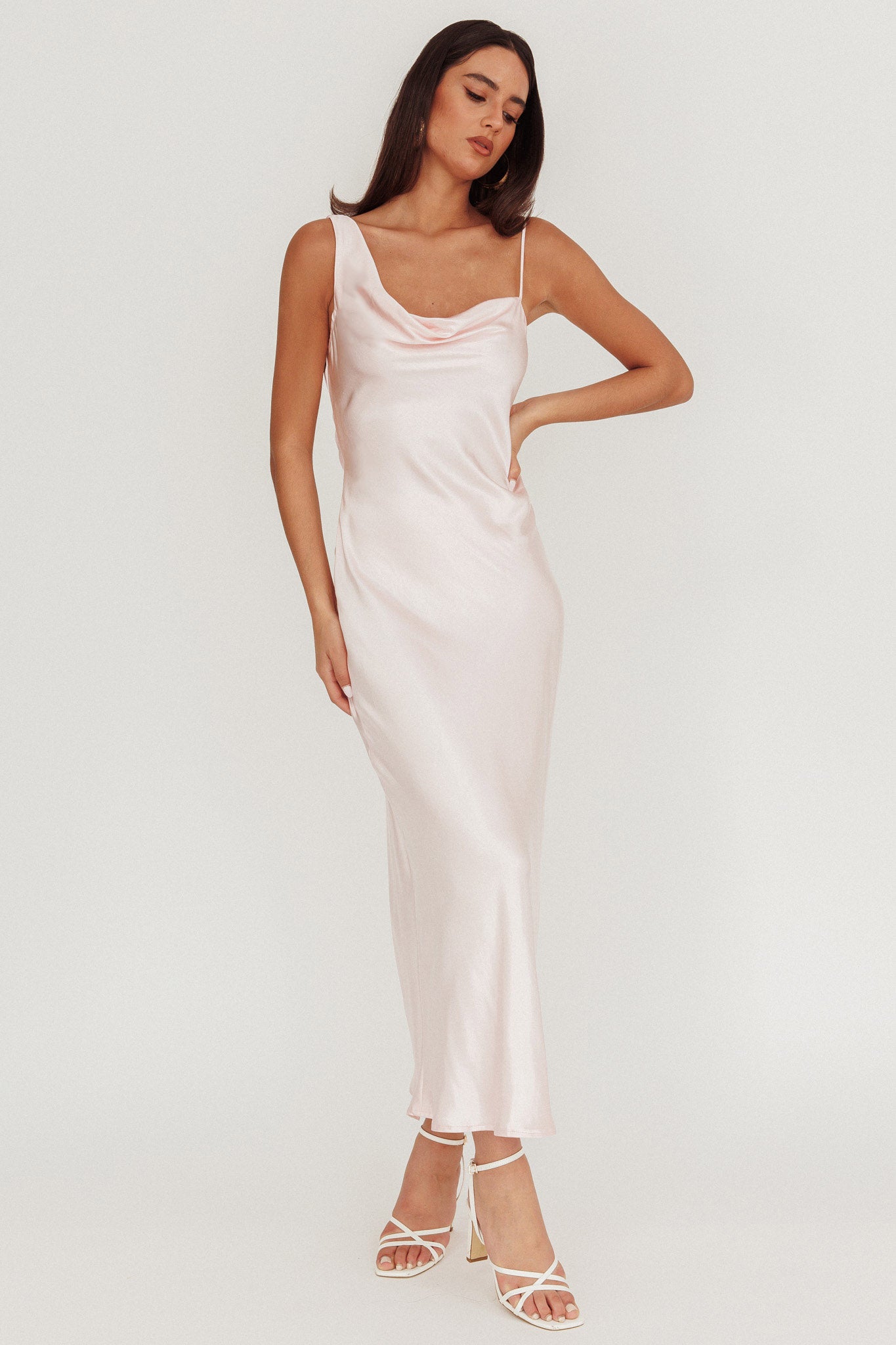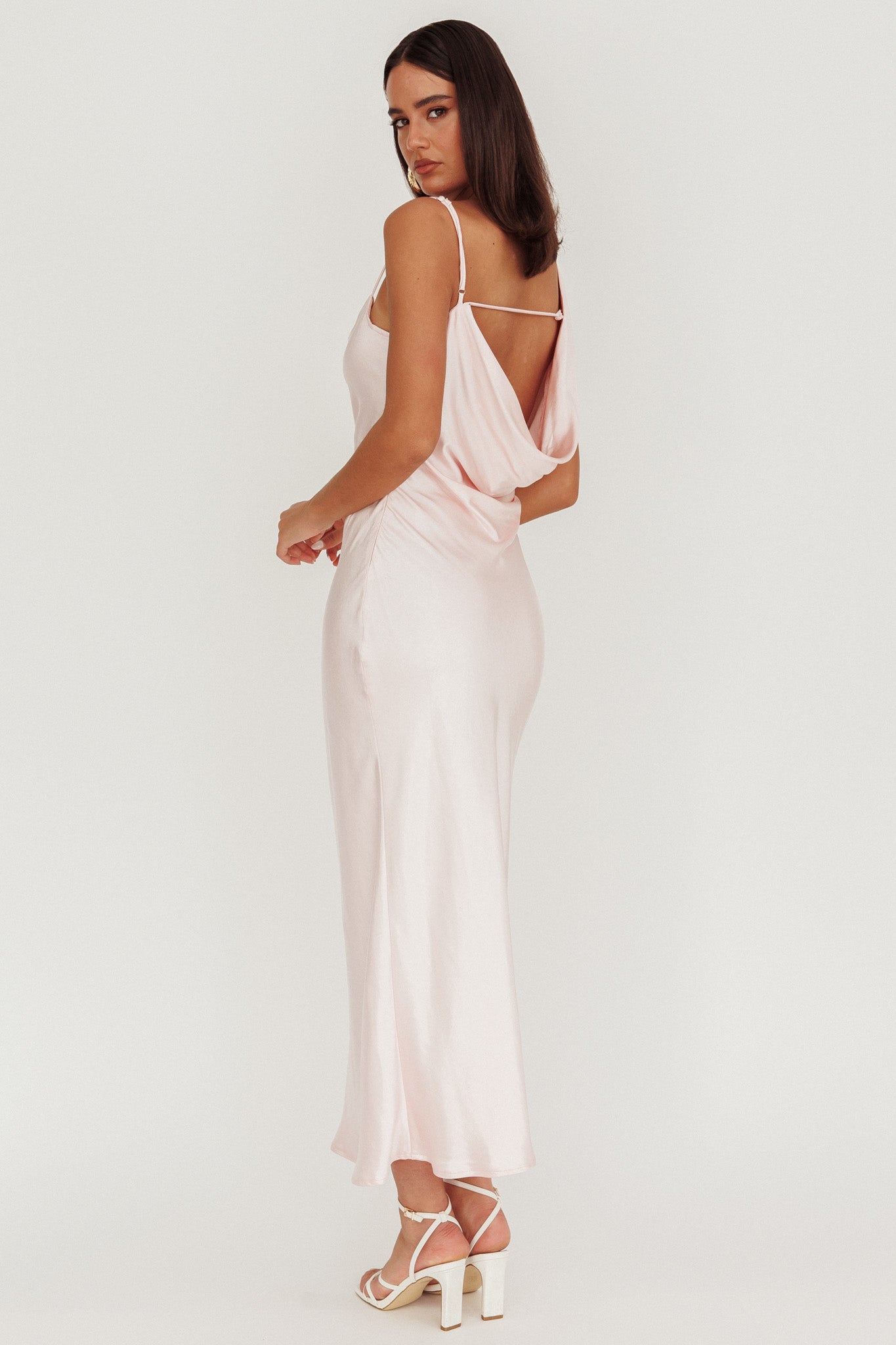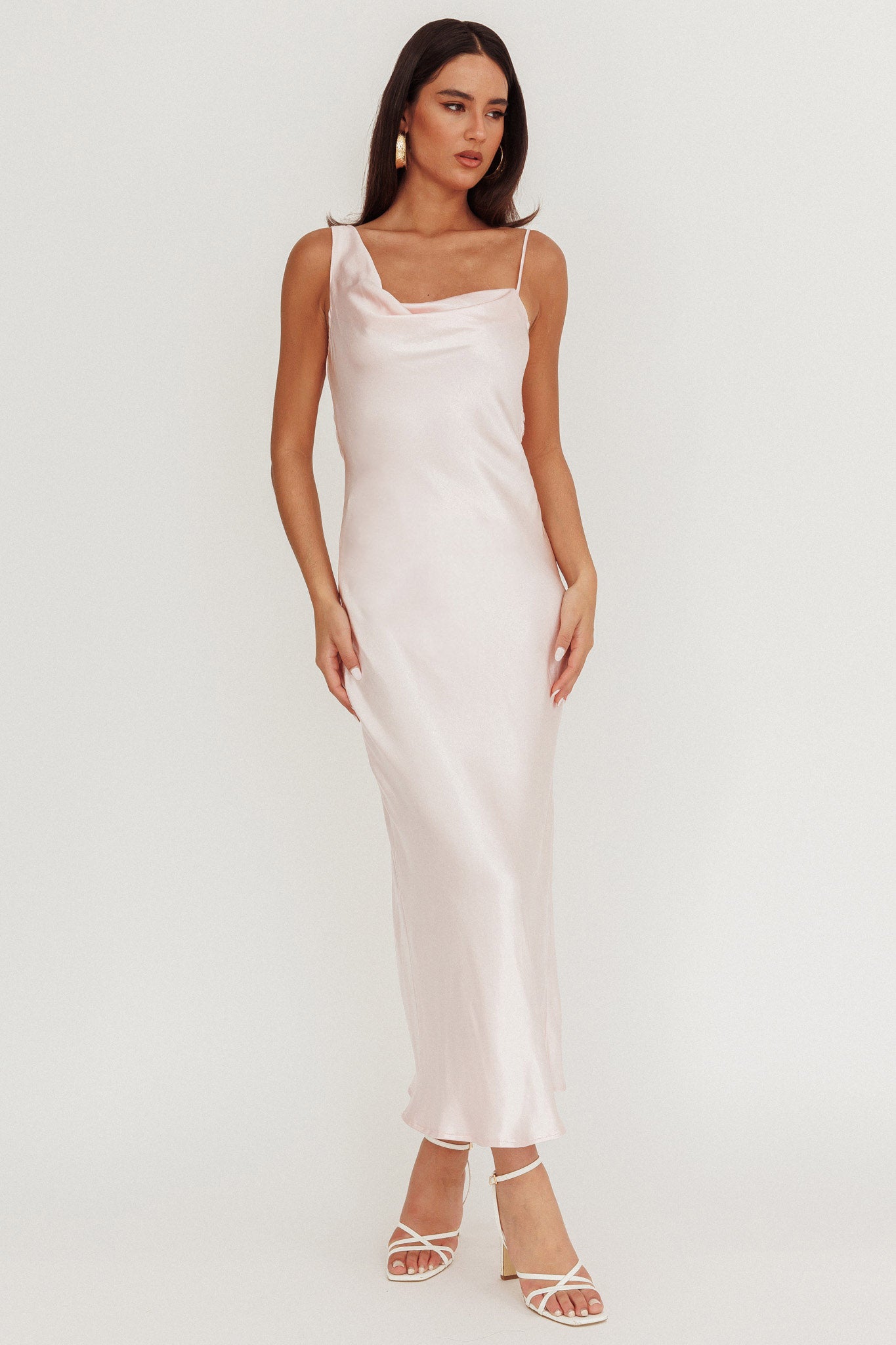 Treats Cowl Back Satin Maxi Dress Baby Pink