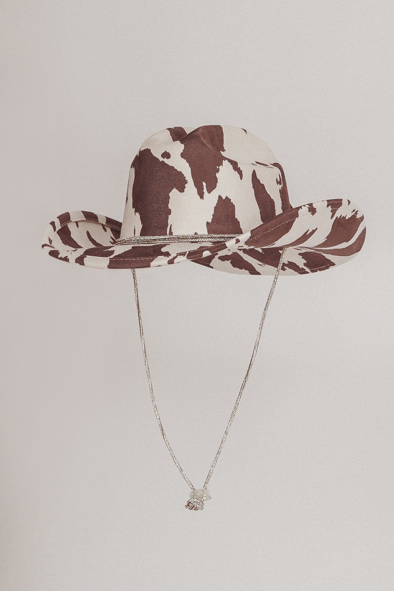 Festival season is right around the corner but you know your fit is not complete without a cowboy hat! Featuring a diamante drawstring fastening for a touch of glam and a classic cow print, we're obsessed! Team it with western boots and a mini dress for a look that will send you straight to the best-dressed list.