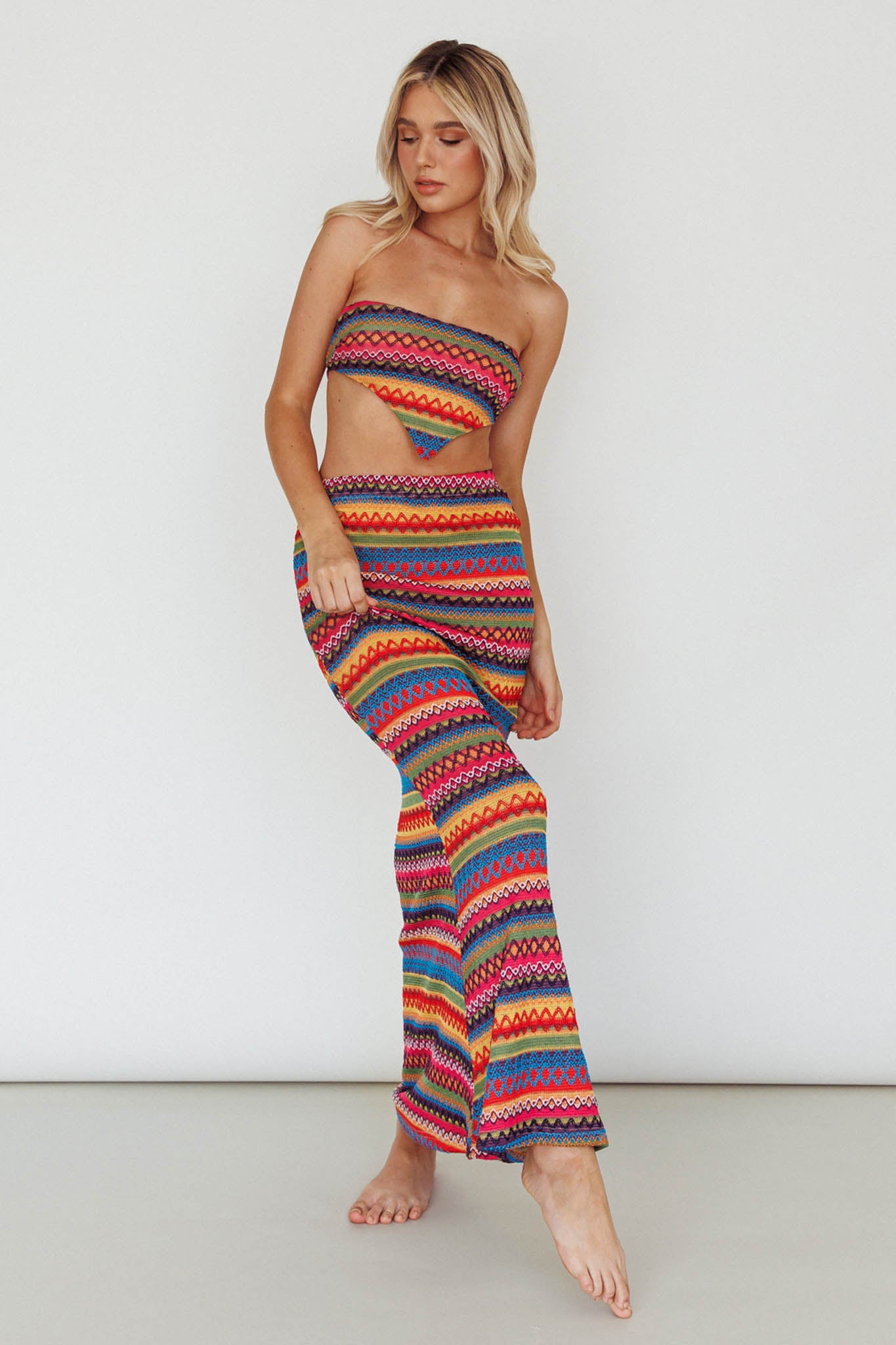 Stand out from the crowd in our super cute Tulum midi skirt. Featuring a textured, knit fabric, it's perfect for Summer cocktails with your girls. Team it with its matching crop top and sandals for a look that will turn heads.