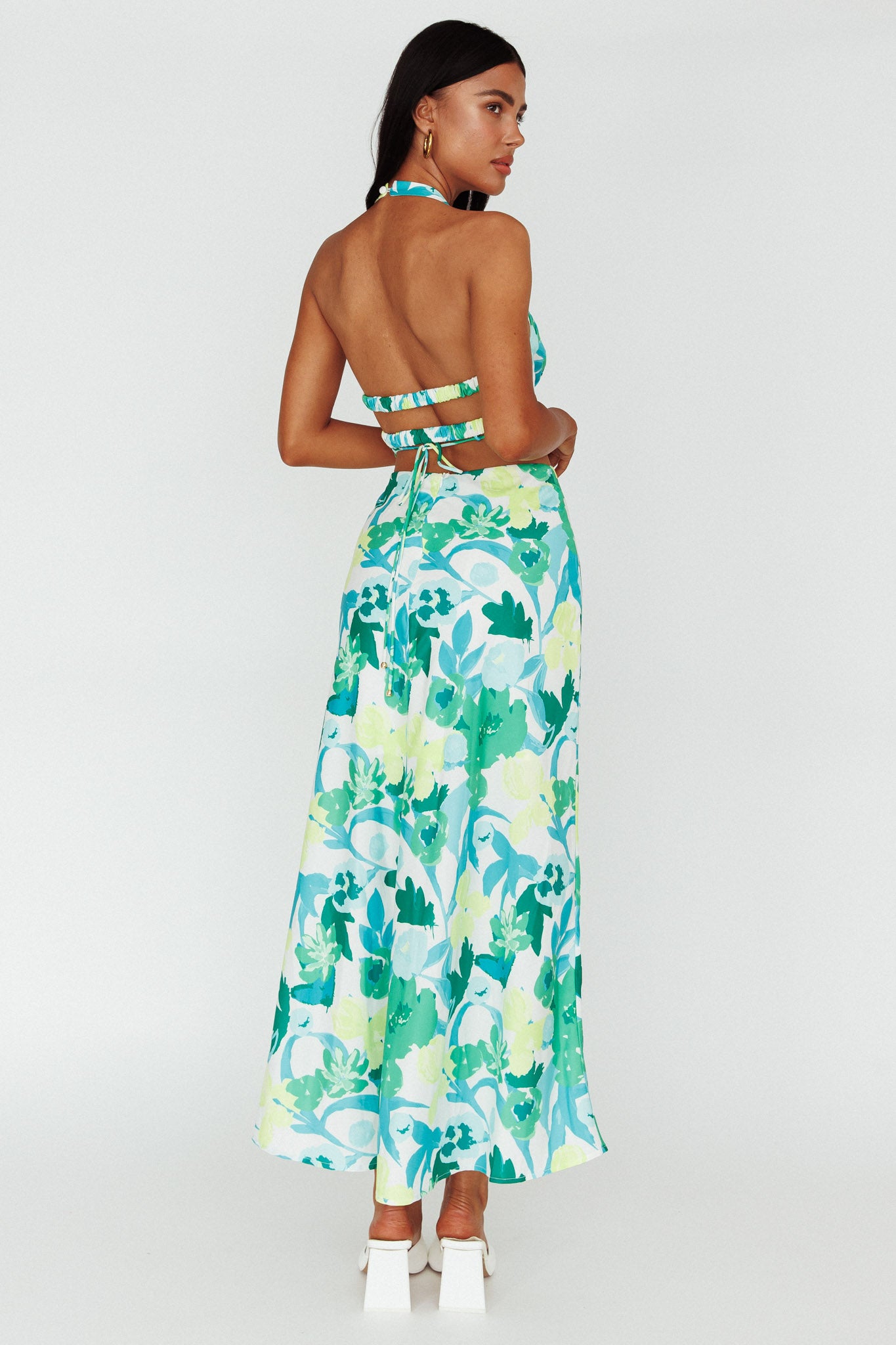 - Green floral midi dress