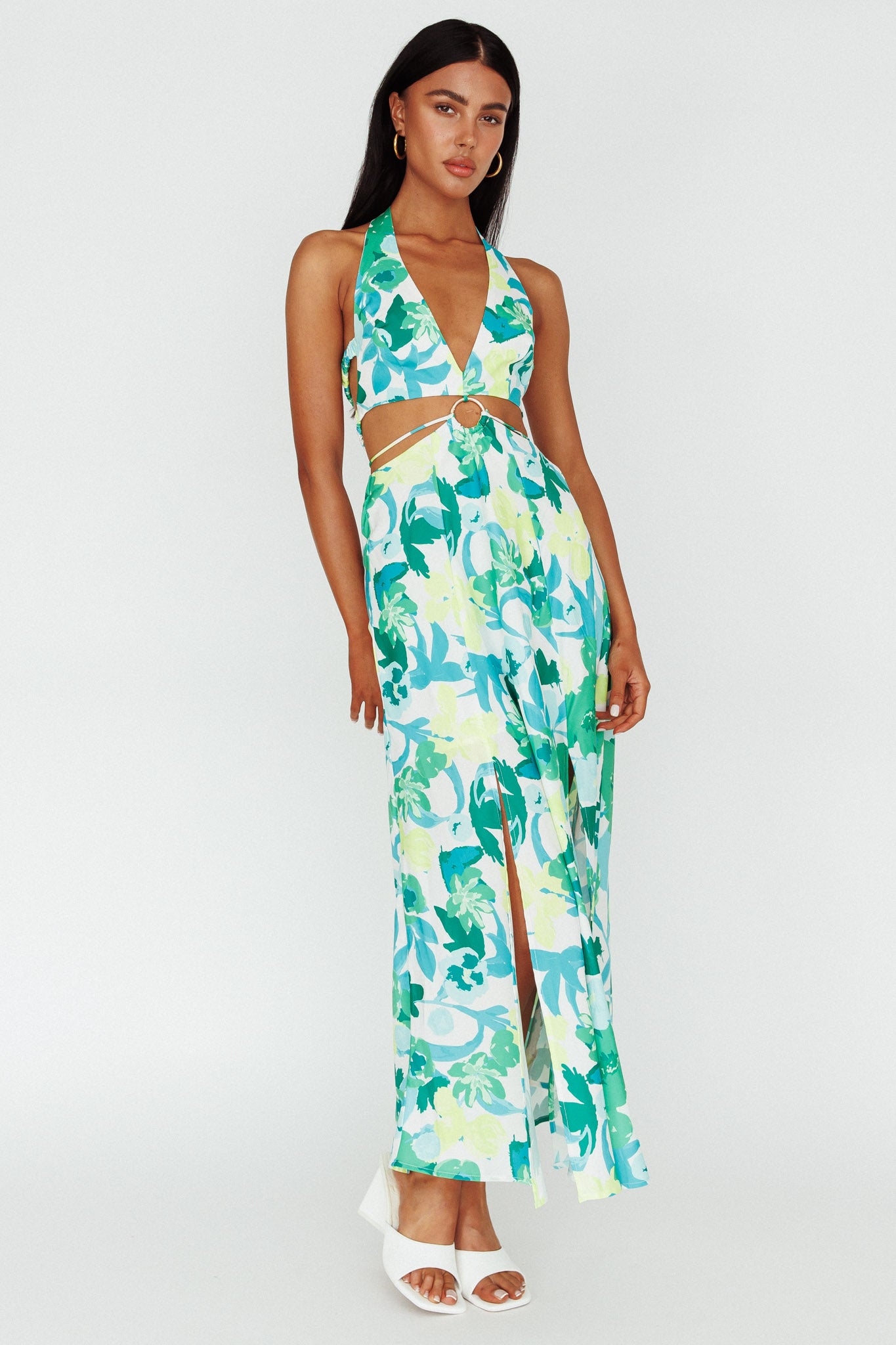 Tuscan Summers Cut-Out Midi Dress Floral Green