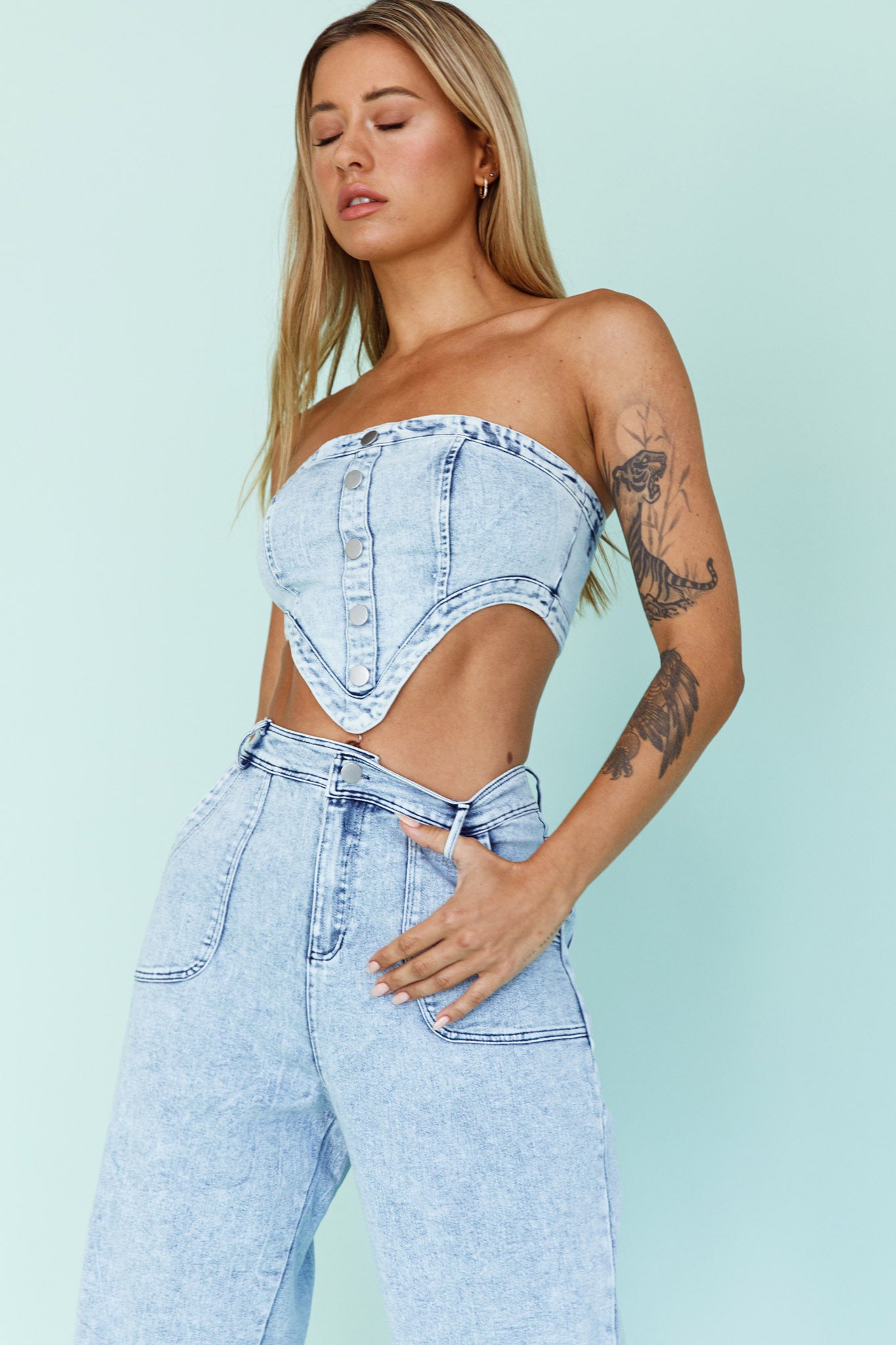 Uptown Strapless Crop Top Denim