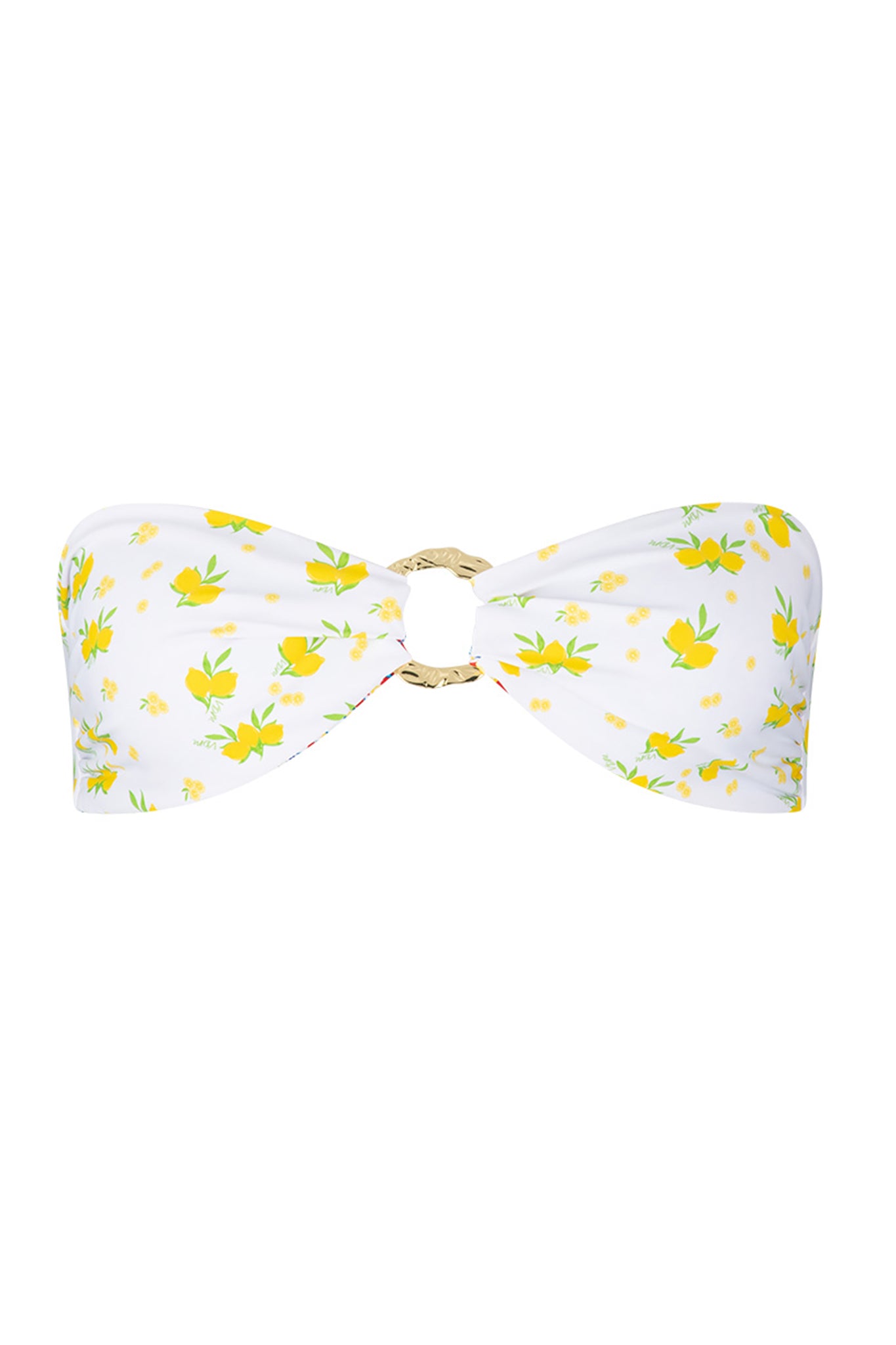 This reversible design has a delicate lemon print on one side and an Italian tiling print on the other, as well as a custom-designed gold ring to complete the look. It is part of Story 3 in Vacanza, a drop that embodies the Italian beautiful coastlines, amazing cuisine, culture and way of life.