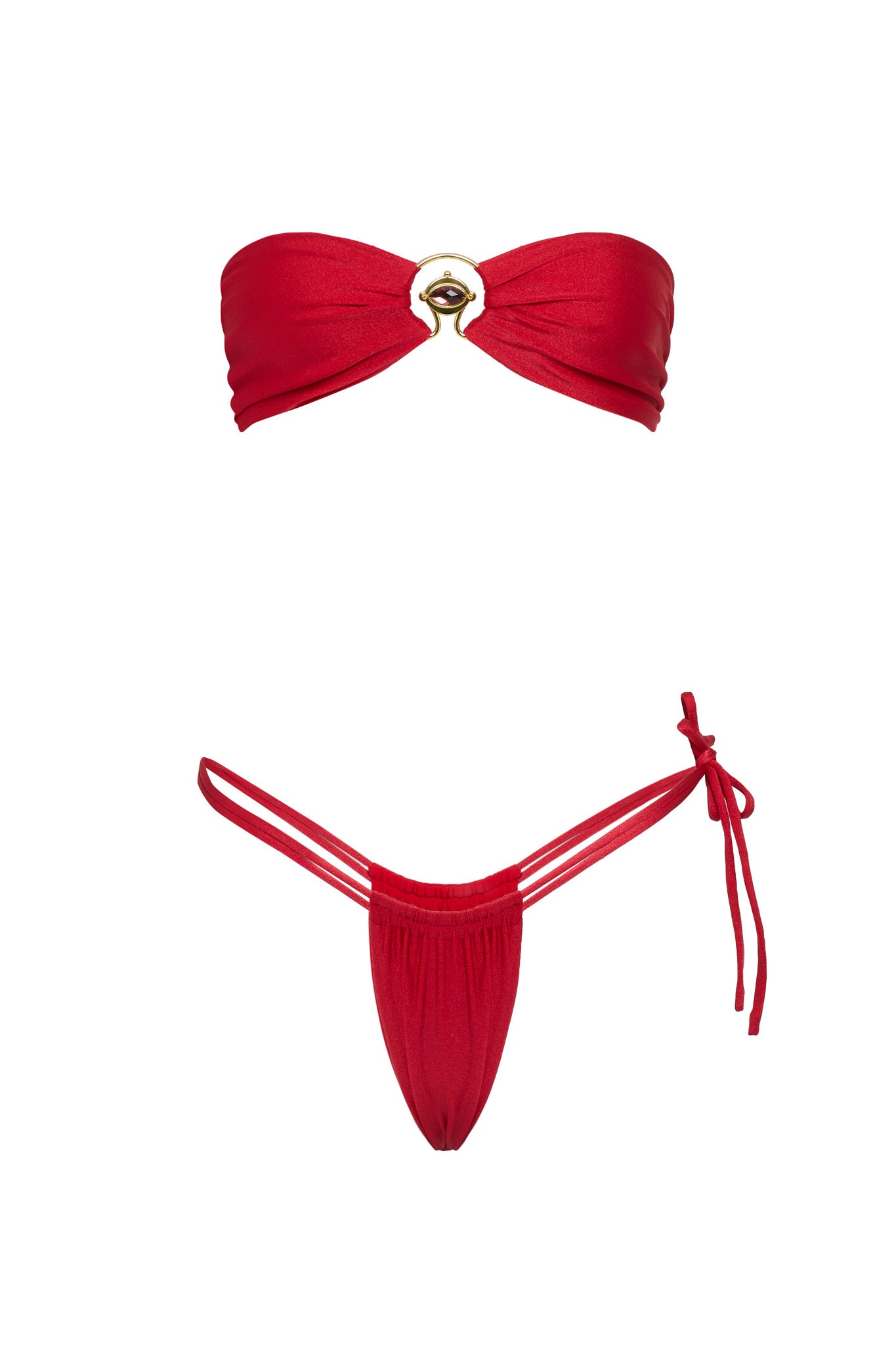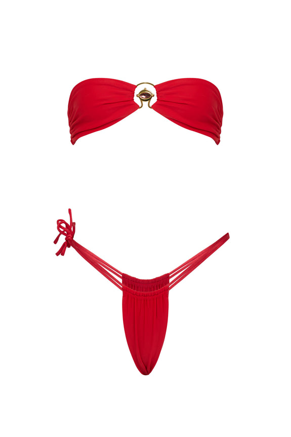 Turn heads in the Bailey bandeau by VDM The Label. Featuring a reversible design and gold ring detail. One side features a timeless matte red, while the other features a shimmery, metallic red. This top features an adjustable tie back, ensuring both comfort and support. Team it with the Panama bottom and get ready to rock the Summer. VDM The Label takes pride in making sustainable products that look good, feel good, and do good! This bikini has ECONYL® lining, made of regenerated fabric. This fabric is created from waste found in landfills and oceans etc. around the world. ECONYL® regenerated nylon reduces nylon's global warming impact by up to 90%.
