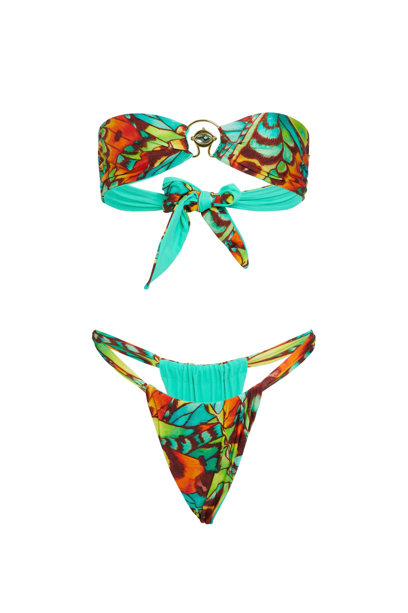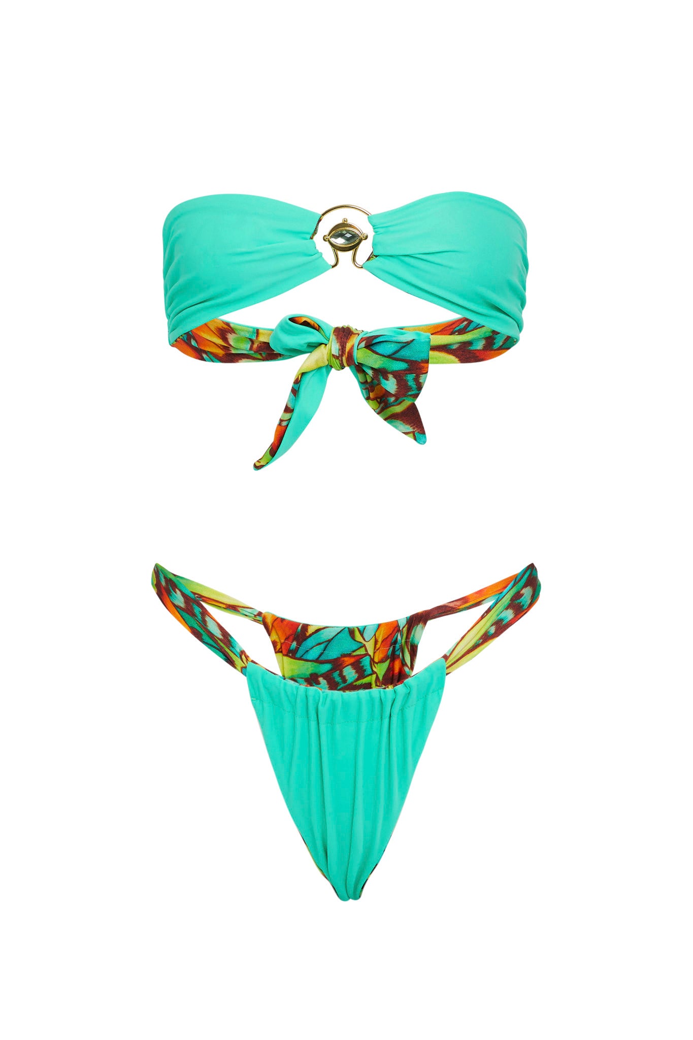 Say hello to the the Livi bottoms by VDM The Label. Featuring a reversible, Brazilian style. One side is a hand-drawn butterfly print, and the other is a classic matte green. There is front and back ruching to offer adjustable coverage ranging from minimal to cheeky. Team it with the Bailey top to complete the look. VDM The Label take pride in making sustainable products that look good, feel good and do good! This bikini has ECONYL® lining, made of regenerated fabric. This fabric is created from waste found in landfills and oceans etc. around the world. ECONYL® regenerated nylon reduces nylon's global warming impact by up to 90%.