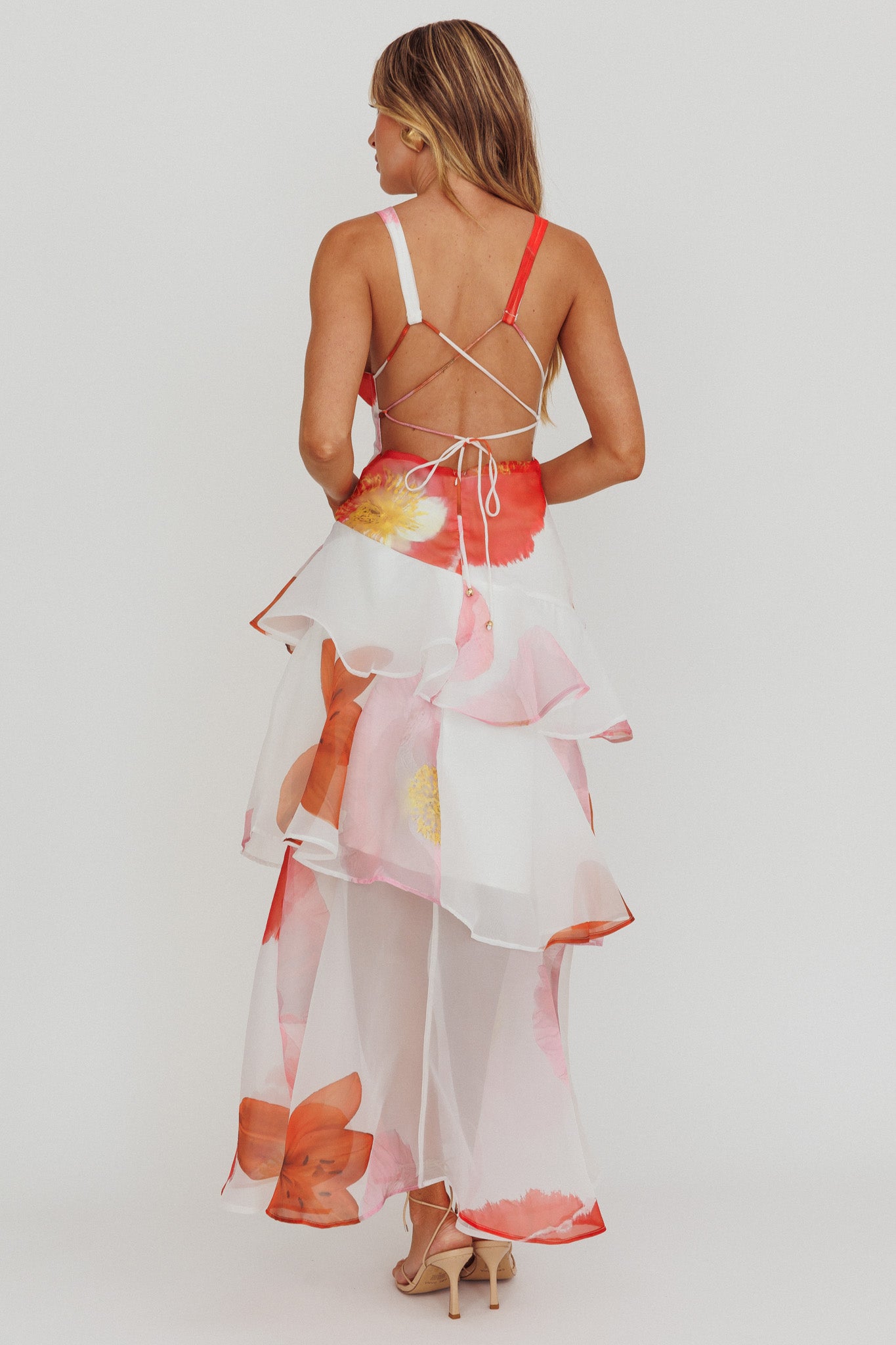 Veda Strappy Back Ruffle Maxi Dress Flowers Pink