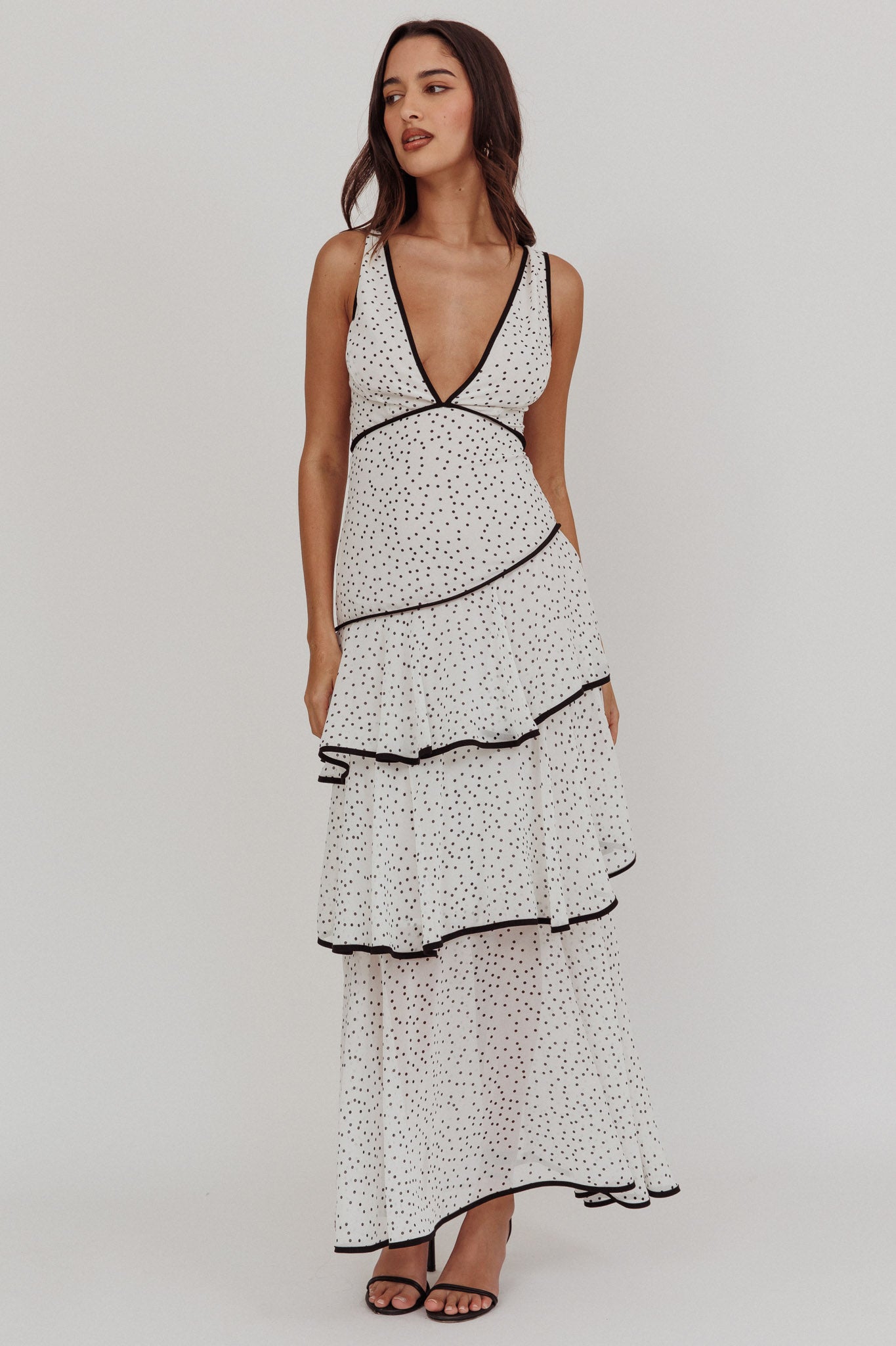 Veda Strappy Back Ruffle Maxi Dress Polka Dot White