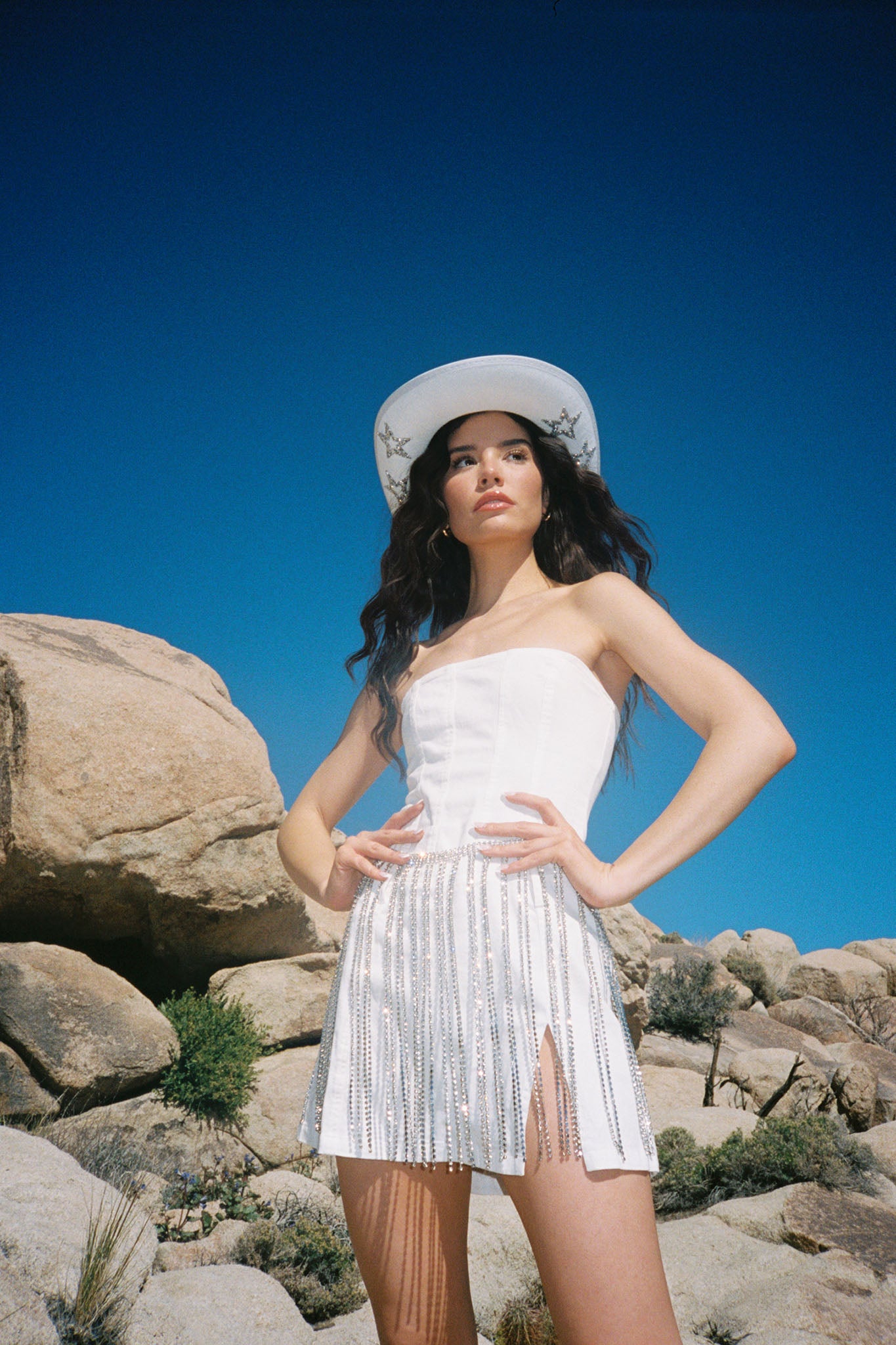 Light up the night in our stunning Venus Rising bodychain skirt. Featuring diamantes throughout, it's perfect for a music festival or bachelorette weekend. Team it with a mini skirt and western boots for a hot look we are loving.