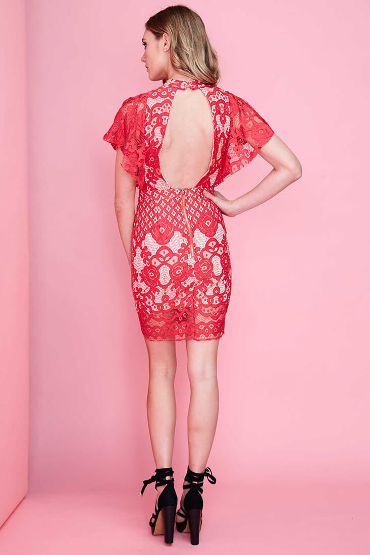 There's so much more to the Vesper Lace mini dress than meets the eye! Intricate lace overlays a skin tone body for the ultimate element of illusion. Nude heels balance the va va voom vibes.