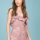 Ruffled collar make for a beautiful outfit with the Victoria Romper. Subtle, sheer overlay is refreshing on this piece. Pair with white sneaks and dark sunnies.