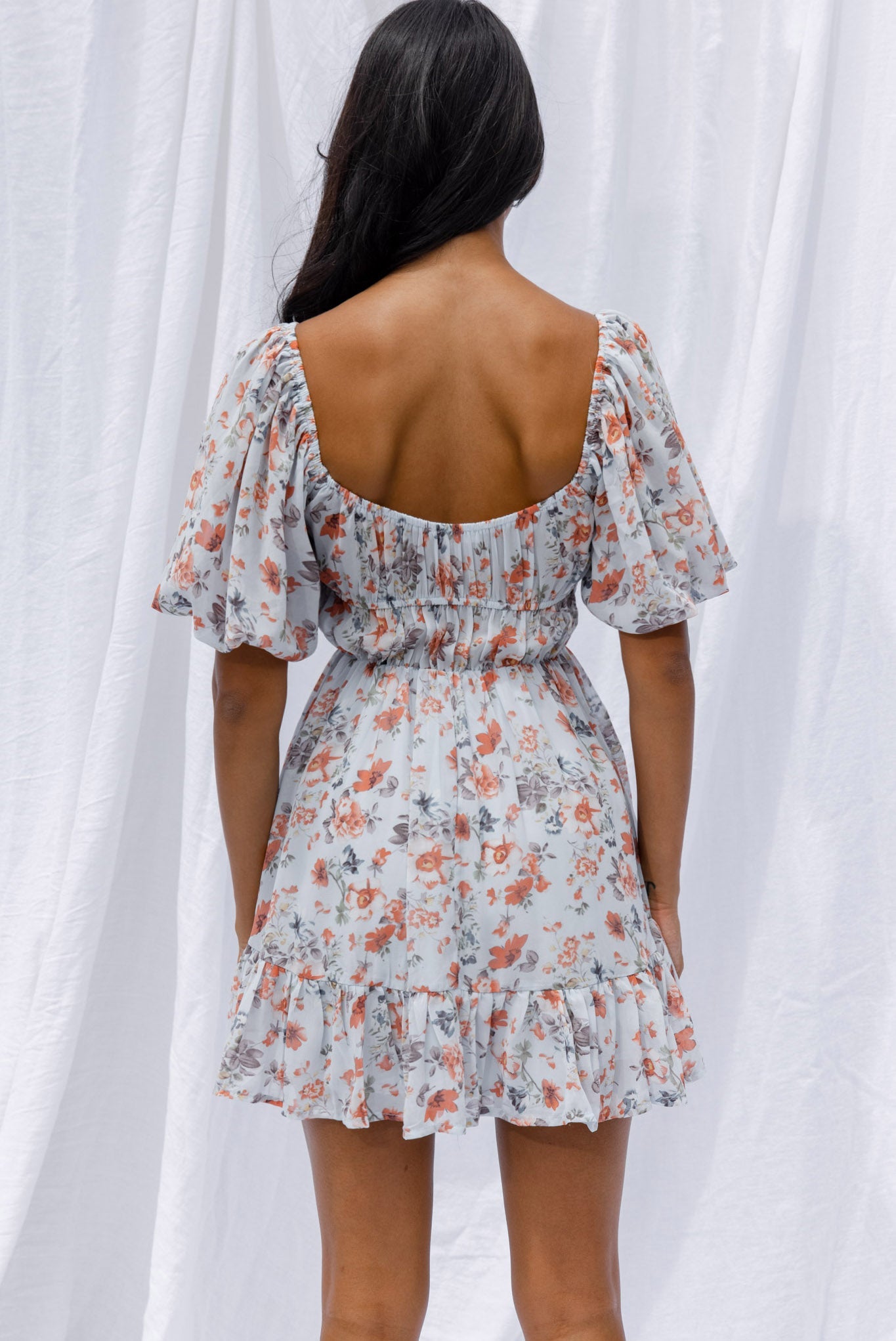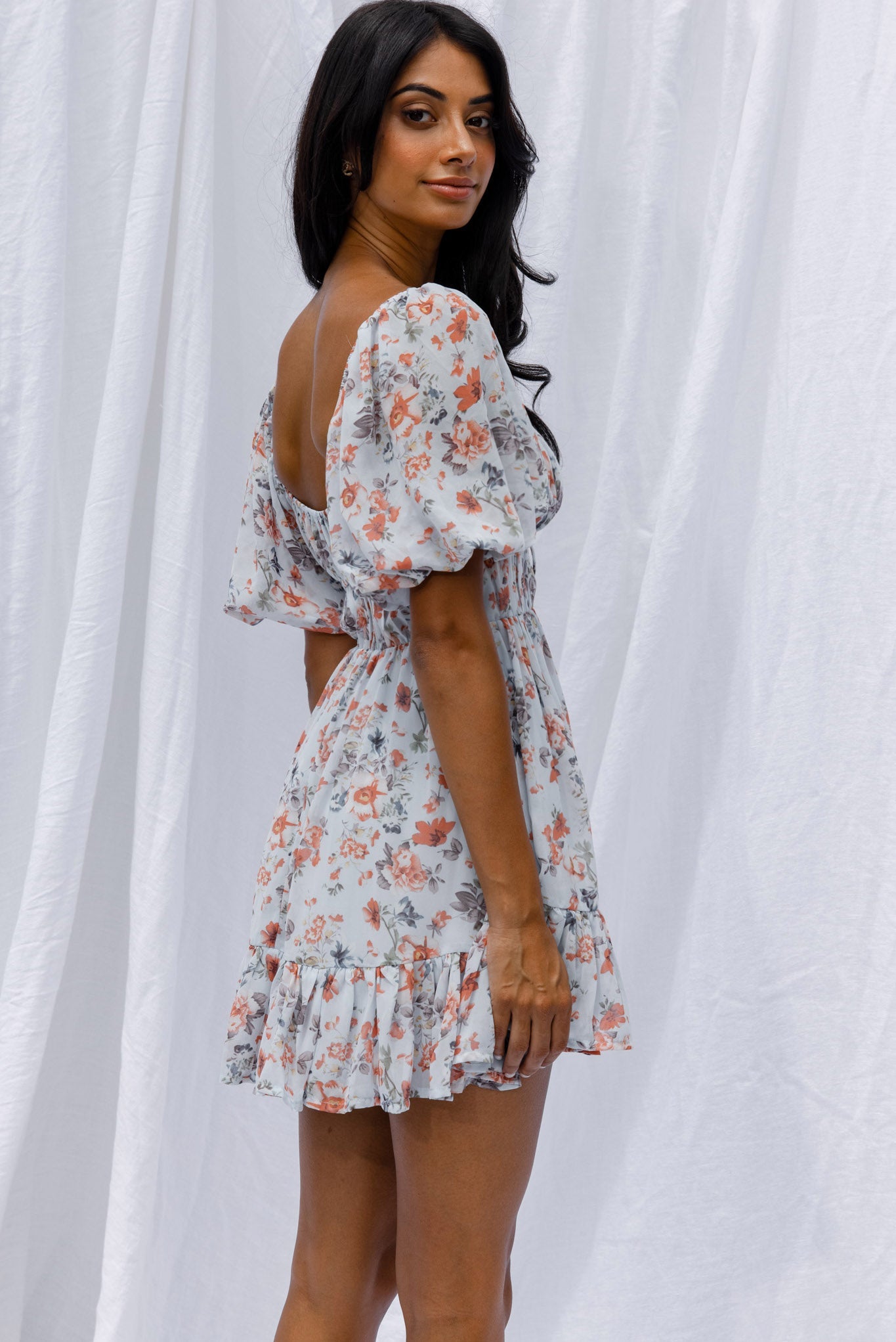 Vista Del Mar Tied Bust Mini Dress Floral Steel Blue