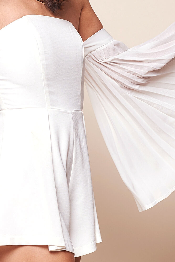 So many compliments, you'll be blushing for a week! The Viva Off the Shoulder Angel Bell Sleeved Romper has a beautiful, soft color and pleated bell sleeves for a classy look. Pair with nude heels and cute studs.