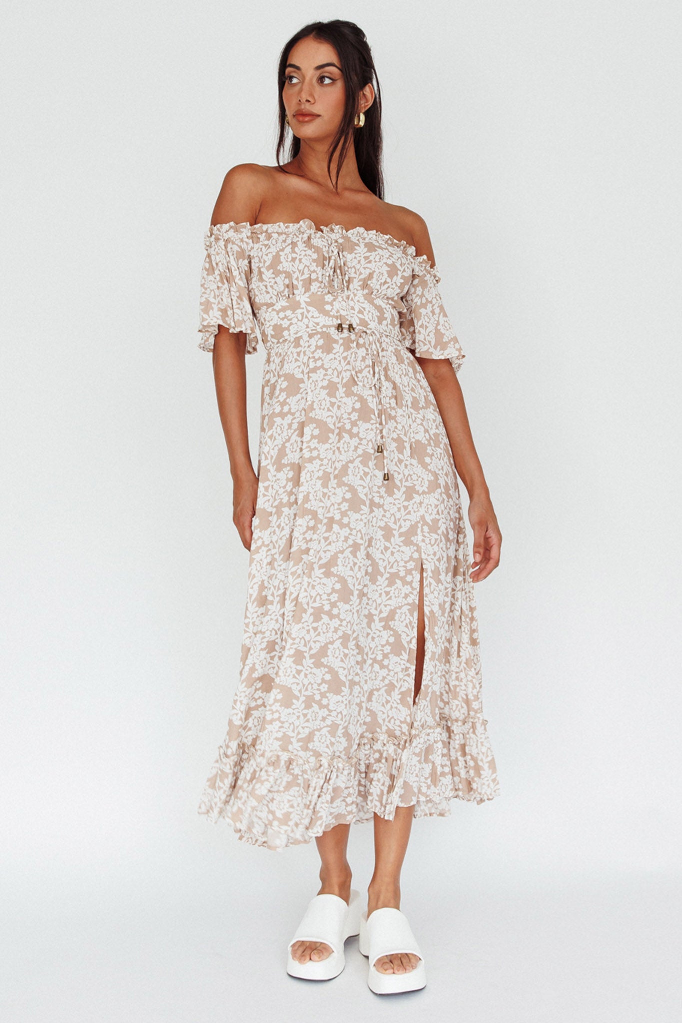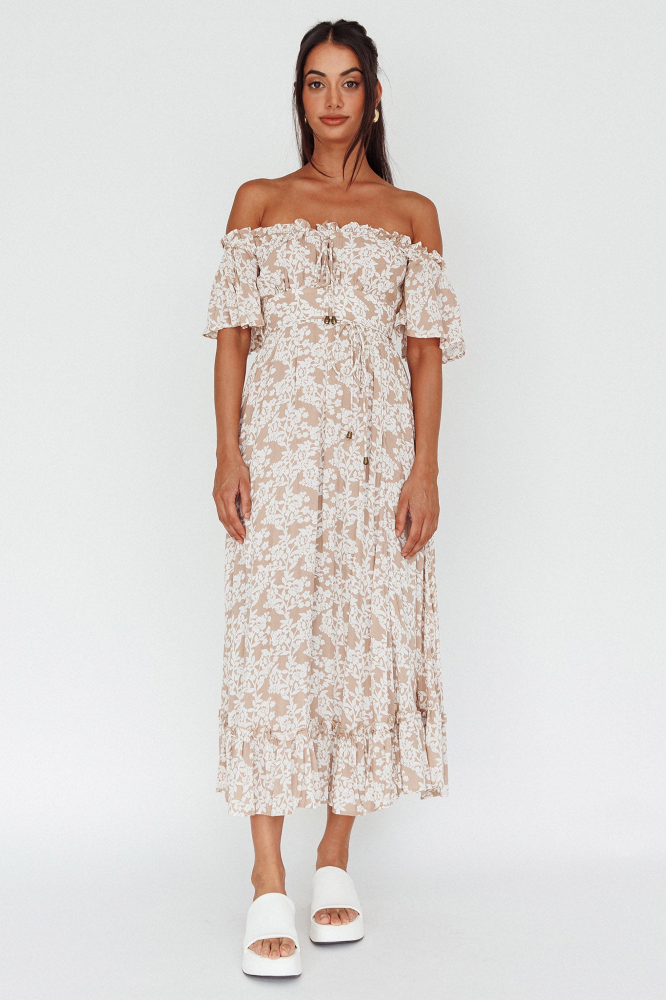 Voyager Off-Shoulder Bell Sleeve Midi Dress Floral Blush