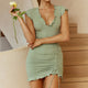 Wake Up Call Ruched Accent Ruffle Dress Stone