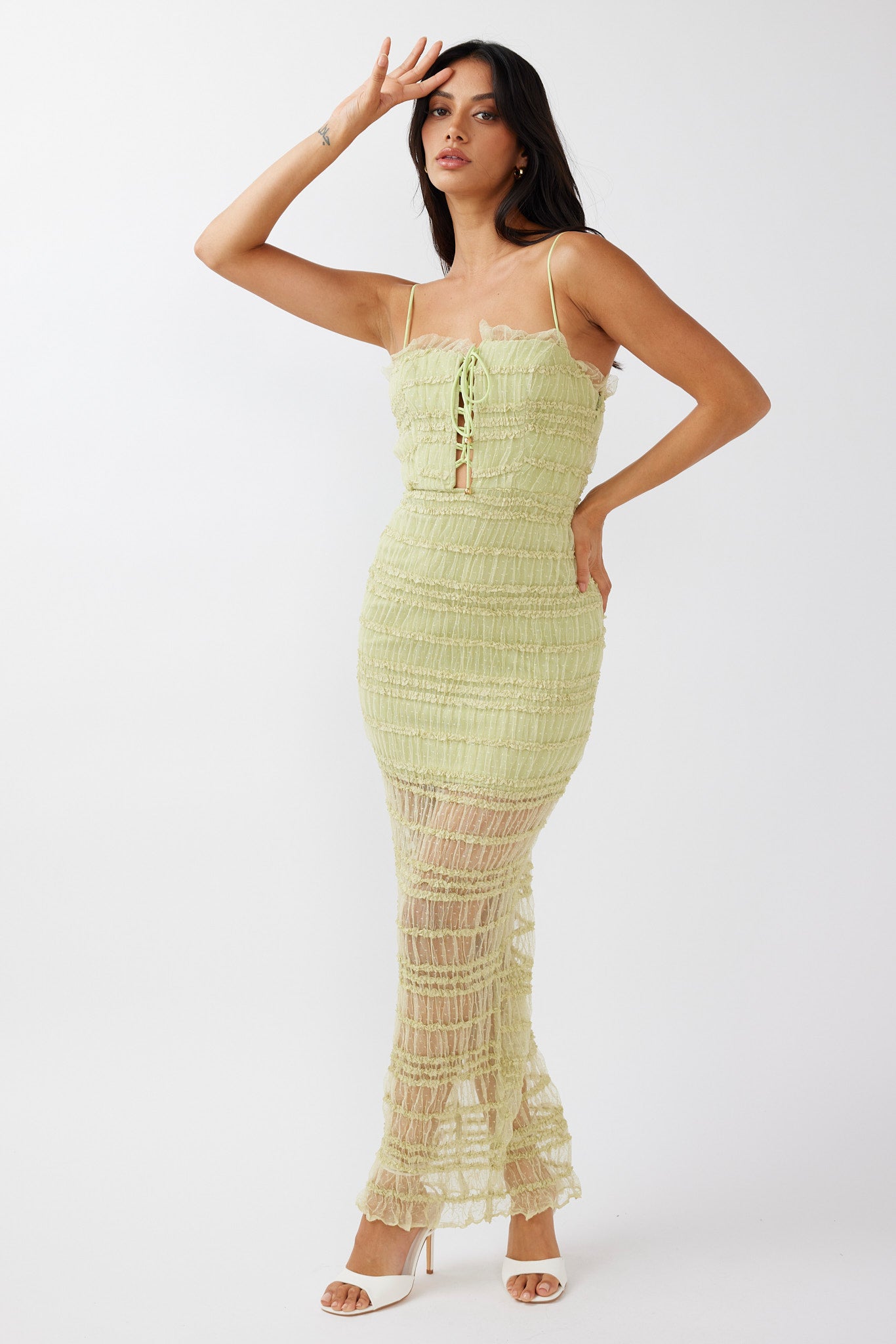 - Matcha, stretchy lace dress