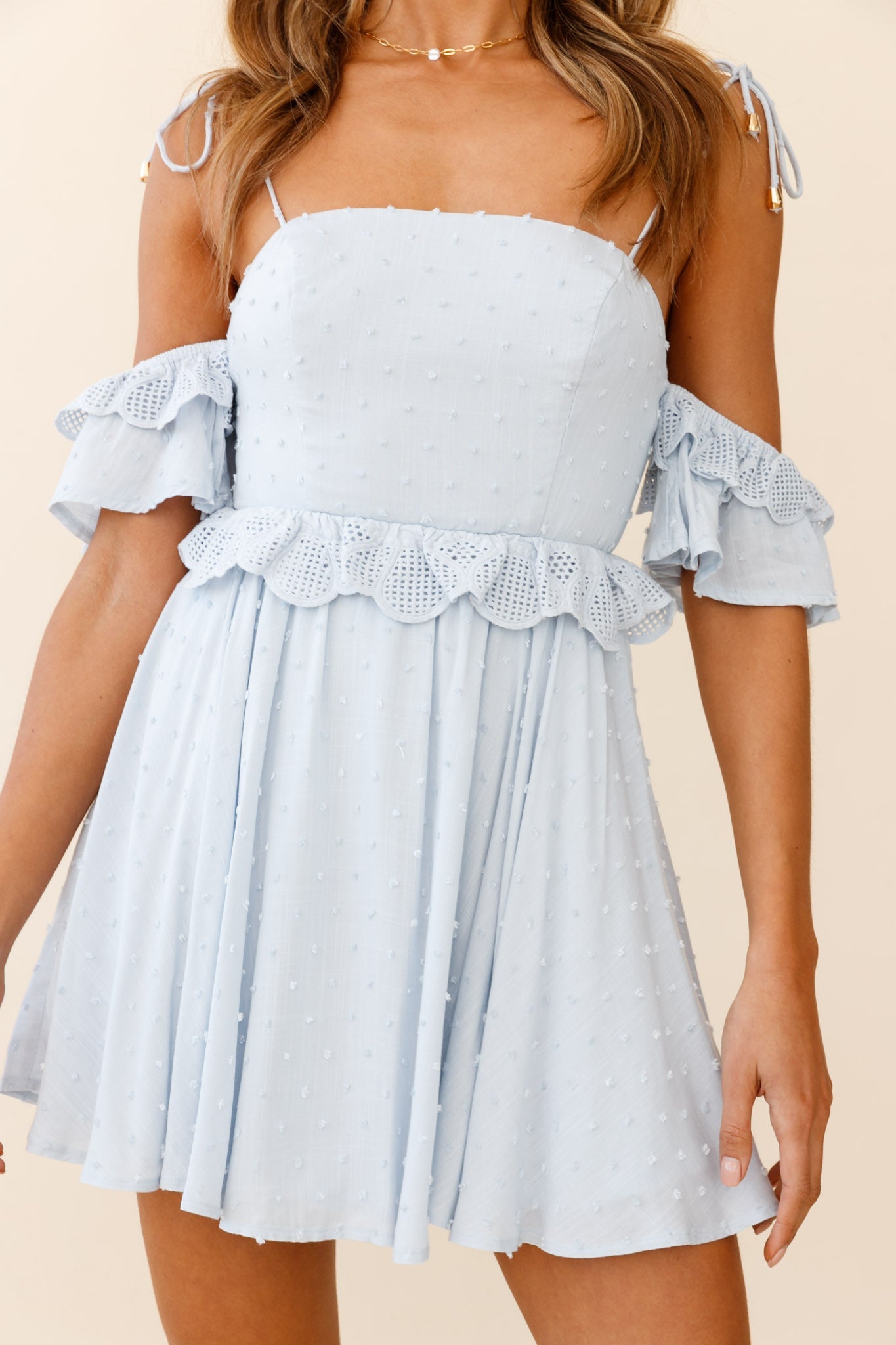 Wayside String Tie Strap Lace Trim Mini Dress Steel Blue