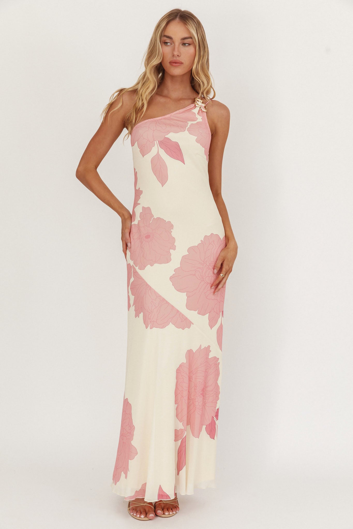 We Belong Together One-Shoulder Maxi Dress Floral Pink
