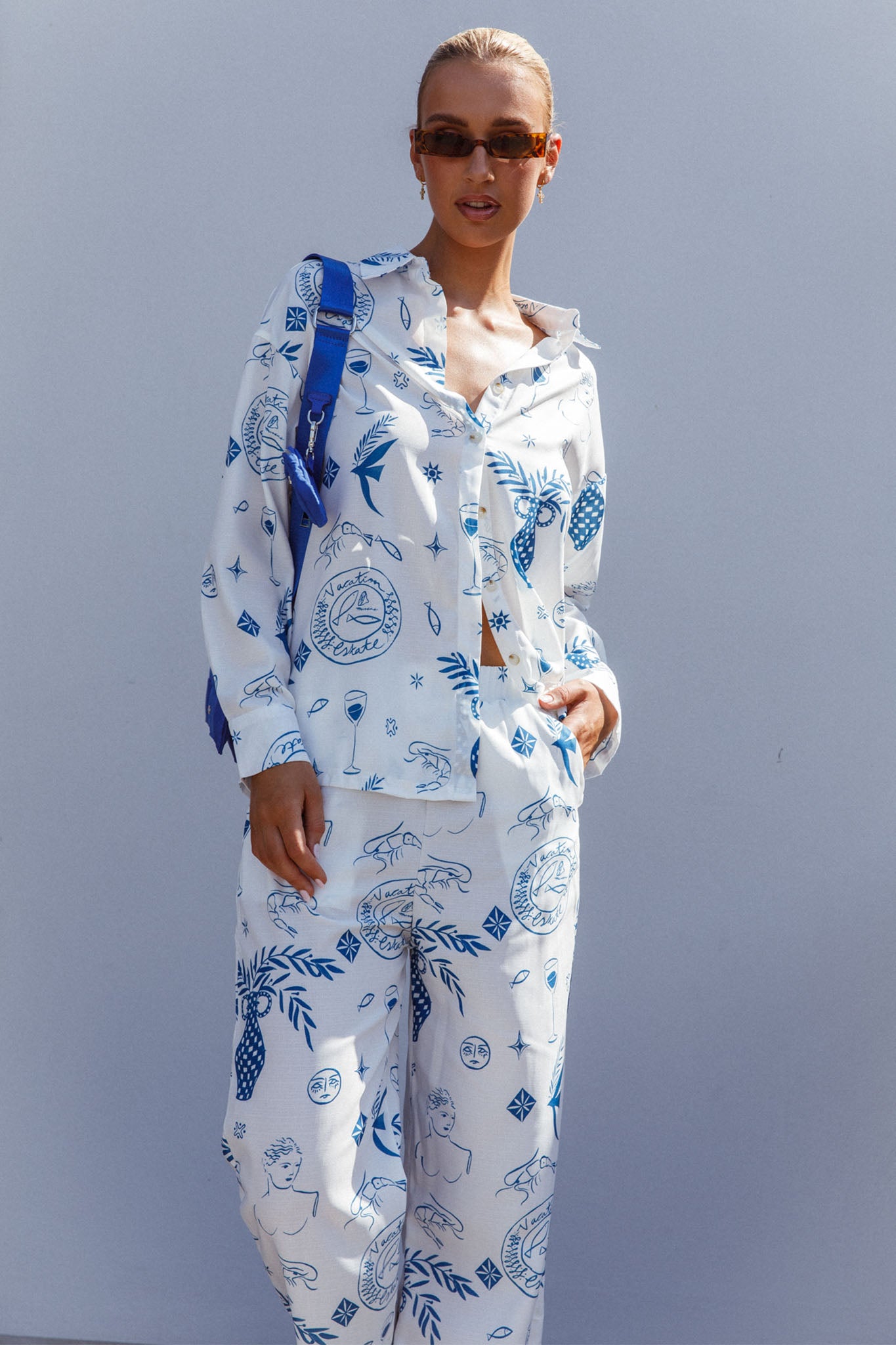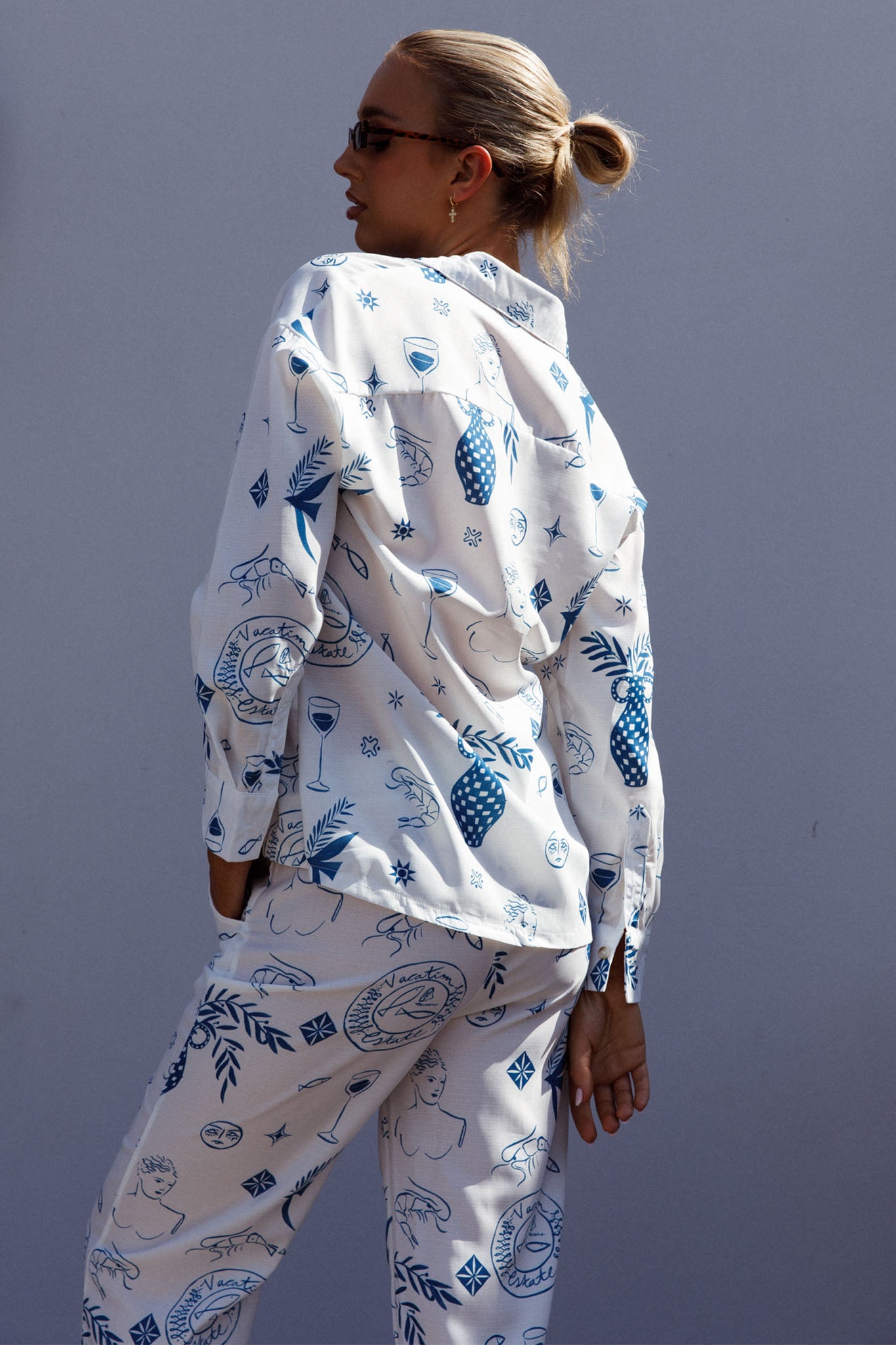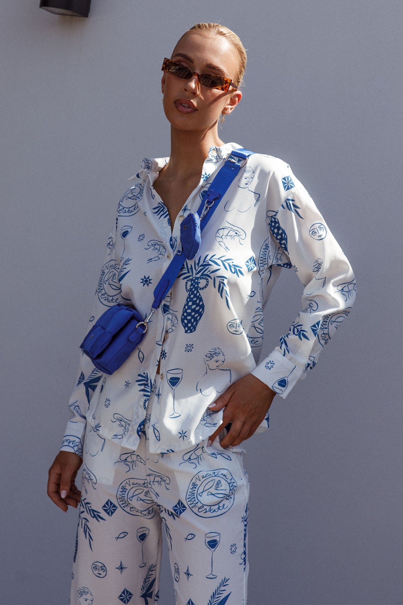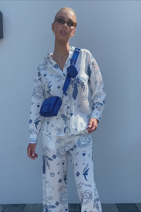 Cruise through your Saturday in our Weekend Bliss top. We are in love with its adorable print that's giving Euro-vacay vibes. Perfect for strolling the flea markets or coffee dates with your girls. Team it with denim shorts or its matching pants for a cute look we are loving.