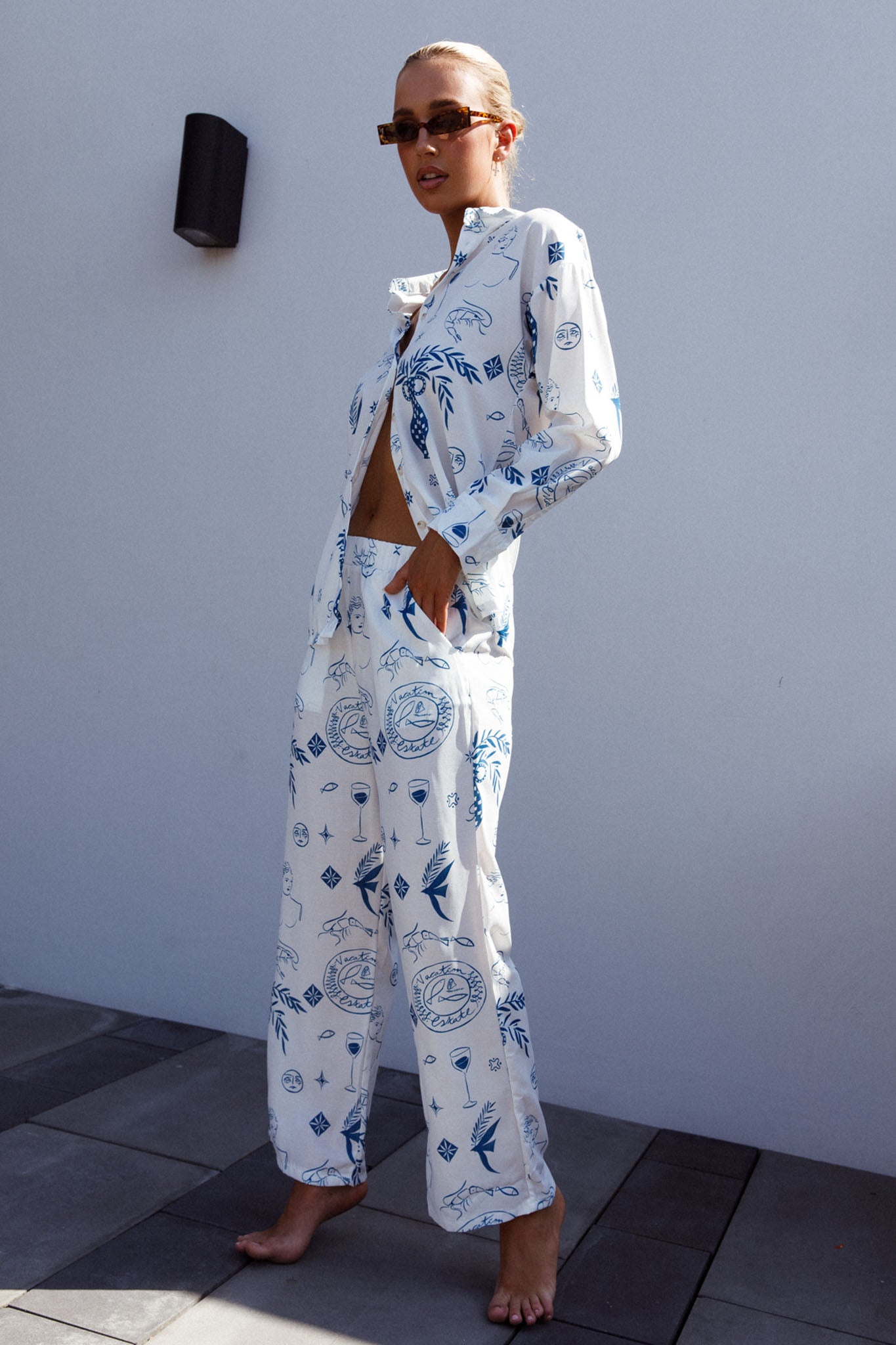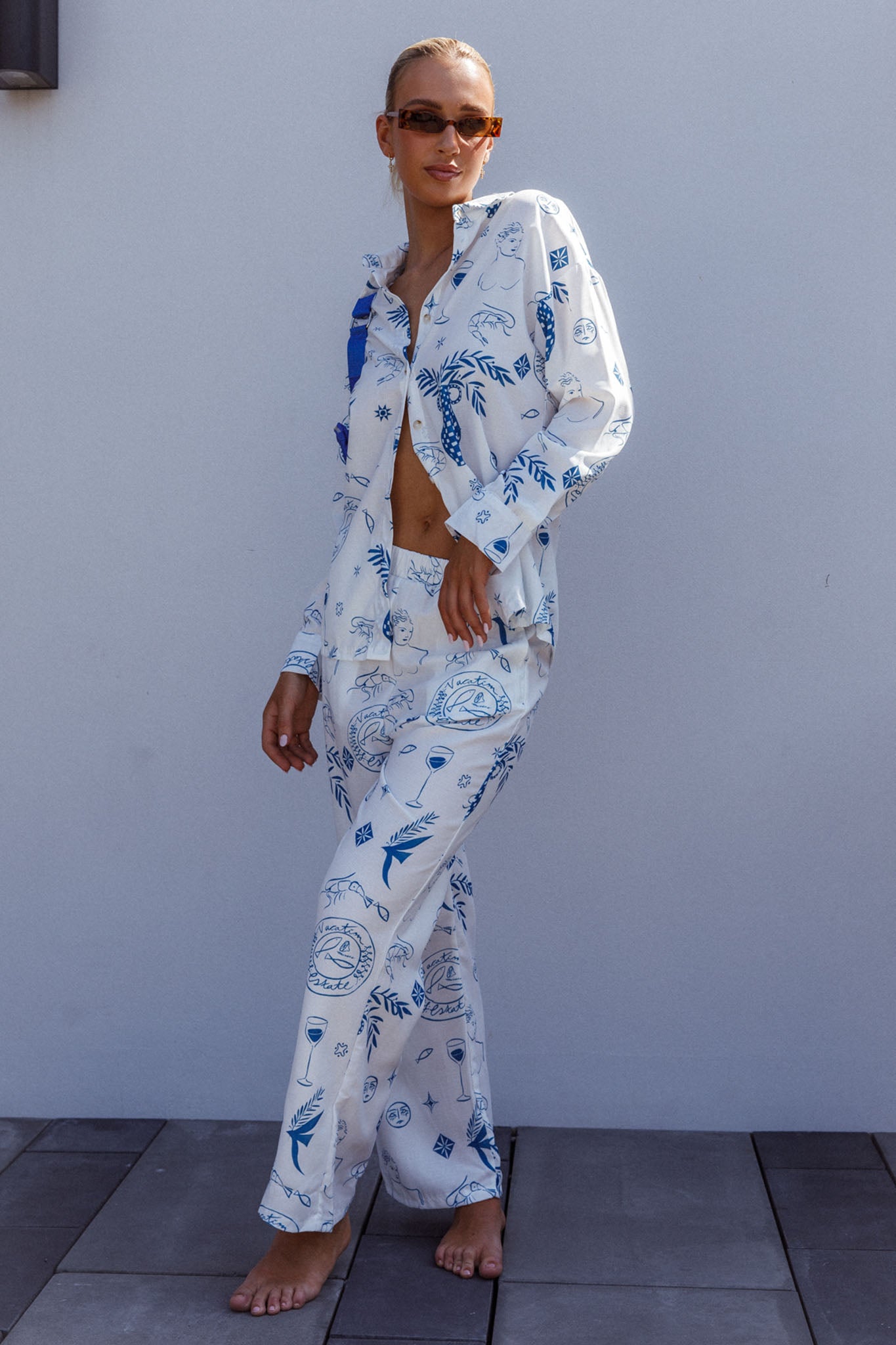 Cruise through your Saturday in our Weekend Bliss pants. We are in love with their adorable print that's giving Euro-vacay vibes. Perfect for strolling the flea markets or coffee dates with your girls. Team them with a denim vest or their matching shirt for a cute look we are loving.