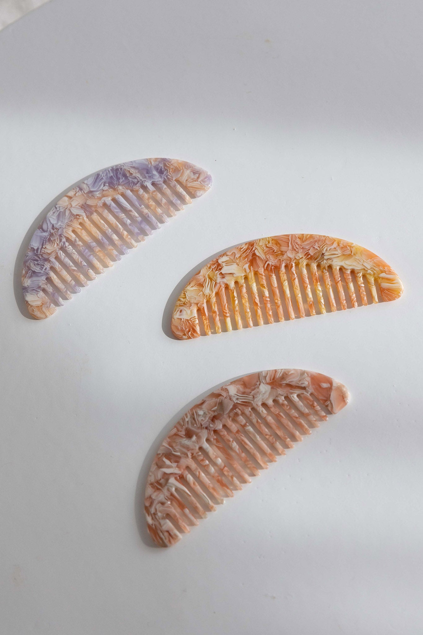 We've fallen head over heels for our pretty Willow comb. Featuring wide, flat teeth and a polished, marble-look acetate, it will look super cute sitting on your vanity beside your fave jewels for the ultimate aesthetic!
