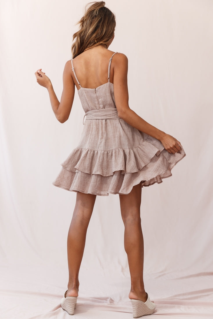 Turn heads wherever you go in this super cute dress featuring spaghetti straps, a tiered ruffle hemline and belted tie around the waist. We are loving the soft, floaty fabric. Perfect for lunch with your gal pals or a day at the mall! Team it with your favorite wedges or pointed-toe flats and a tote. Style queen!