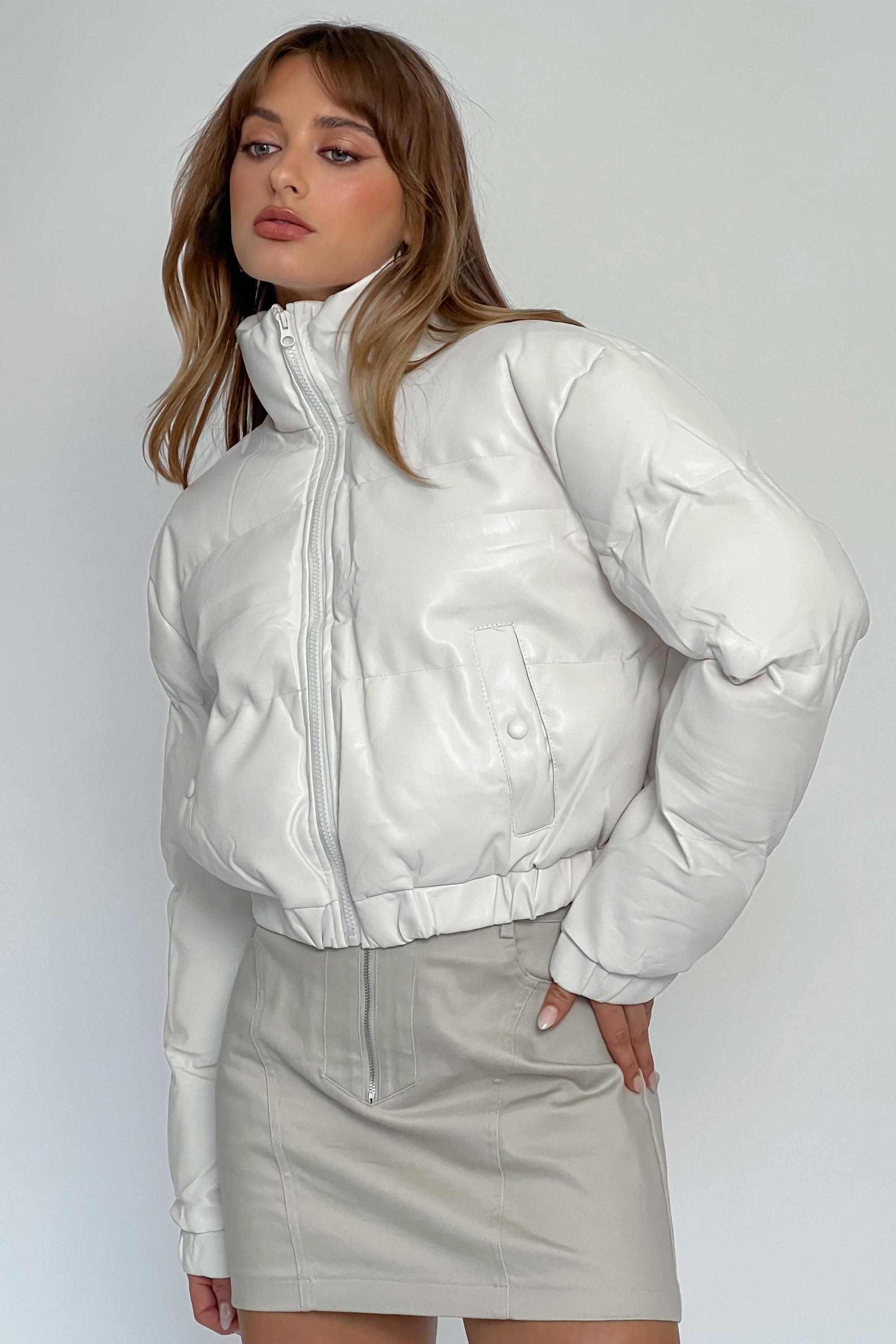 Winter Magic Faux Leather Puffer Jacket Cream
