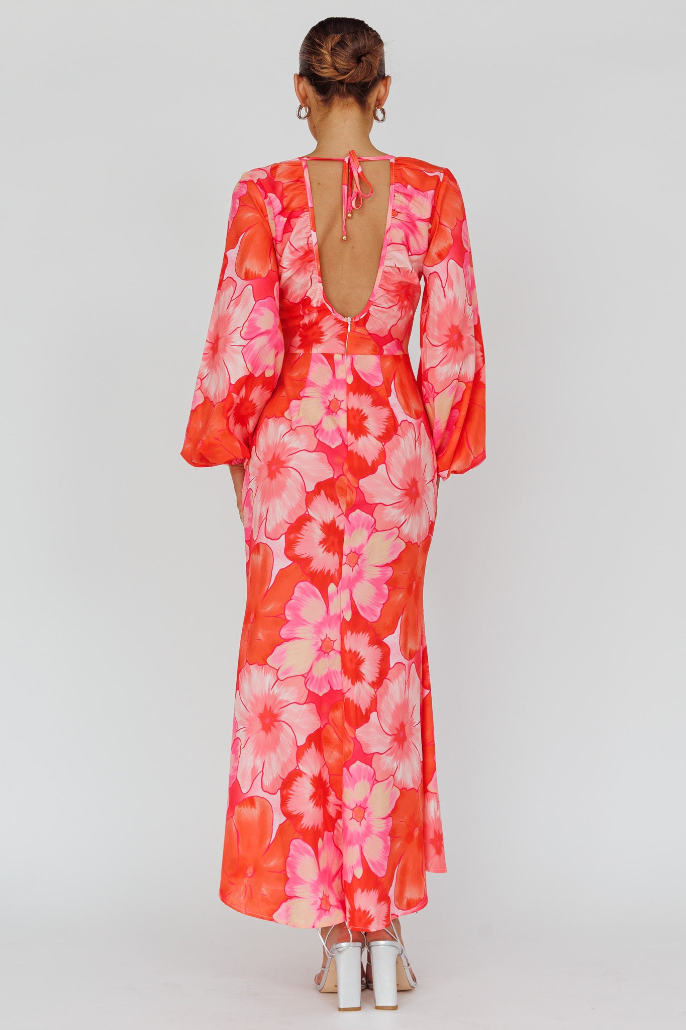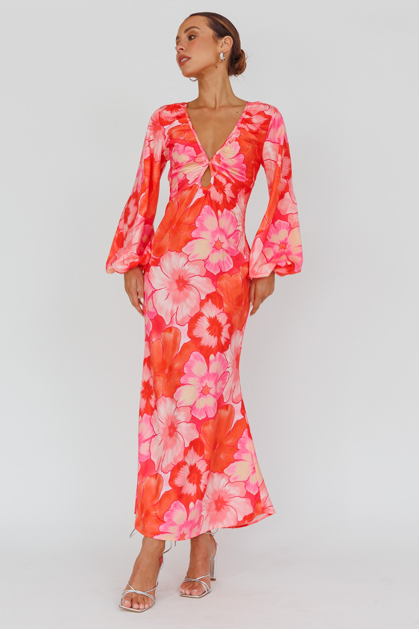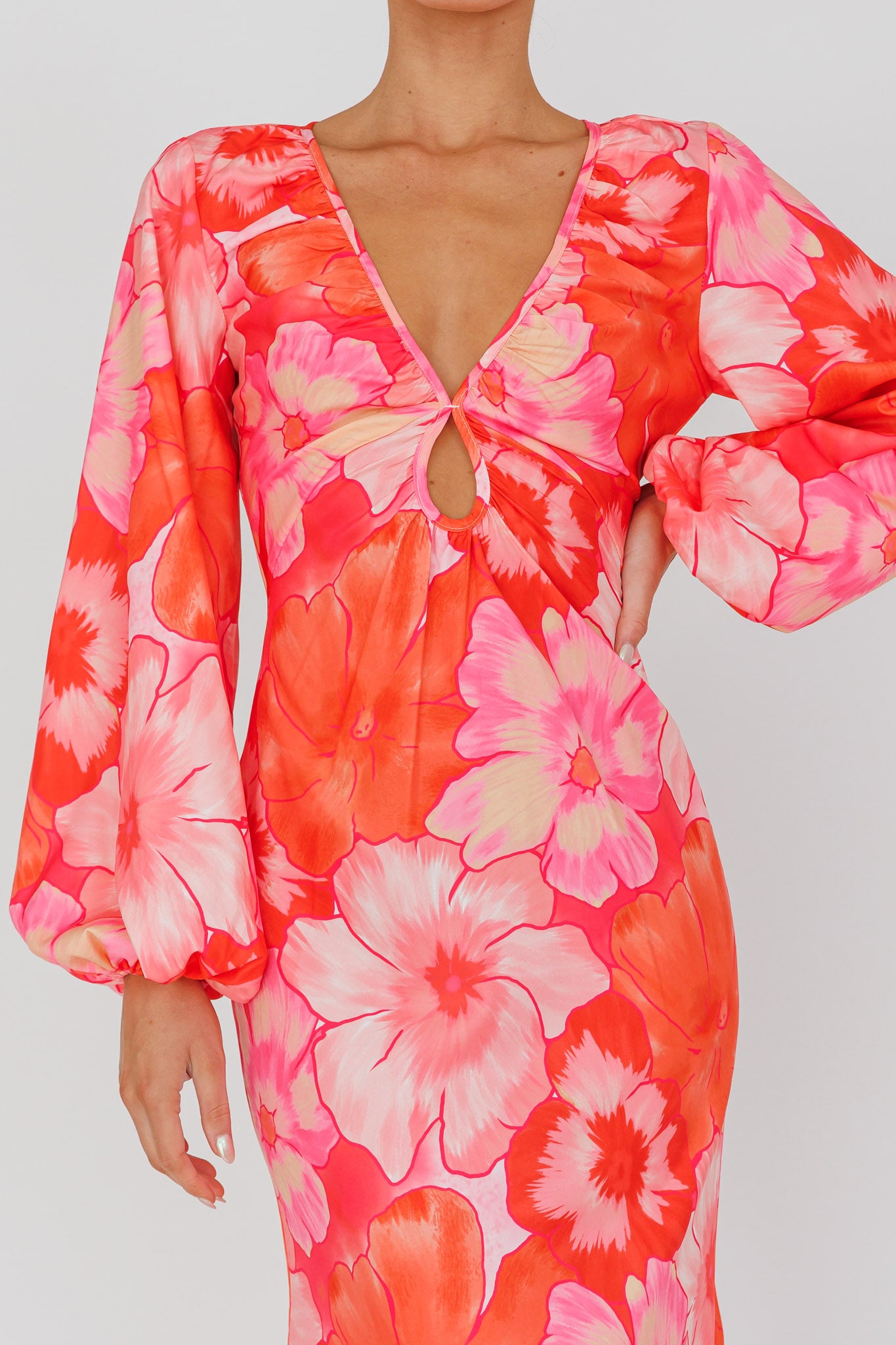 Yessica Balloon Sleeve Midi Dress Floral Pink