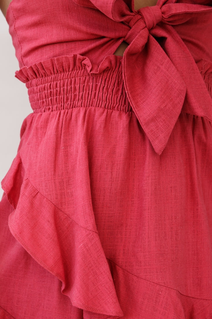 You Got It Tie-Knot Bust Ruffle Romper Rose